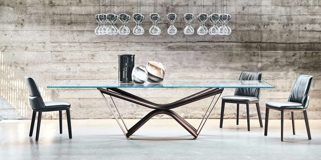 Divanni GP is another Italian manufacturer producing ultra-modern pieces worthy of admiration. Their Grus Dining Table features a geometric base and a melted glass top that resembles rippling water, showing an innovative spirit when it comes to form and finish.
