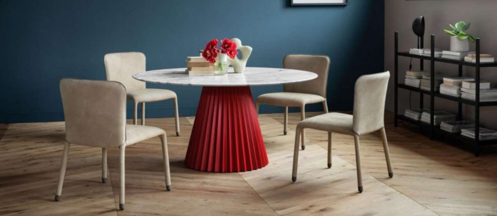 Both forward-looking and steeped in tradition, Italian design often finds itself taking inspiration from trends of the past and reviving them with a new twist. Vogt cites the Tavolo Plisse Dining Table with its pleated base inspired by fashions of the 50s and 60s – “Its unique retro look will encourage conversation and let it become one of your favorite pieces.”