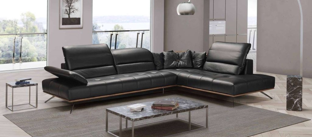 Complete your look with the Sabrina Sectional by Incanto Italia. “Featuring beautiful black leather with tufted accents, and a thin walnut base trim, Sabrina’s mid-century accents can also mesh seamlessly with a variety of design styles,” explains Vogt. For a luxurious self-care routine, try the Cocoon Trousse, whose elegant ceramic marble tabletop and LED mirror blends the comfort of a traditional bedroom with the edginess of a modern one.