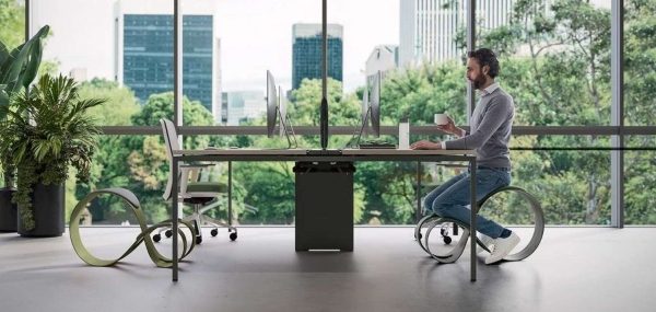 For health-conscious office seating with a low footprint, try the Moon Knee Chair by Quadrifoglio. Featuring an open infinity shape and an innovative frame that shifts the sitter’s weight onto their knees to improve their posture, Moon brings ergonomic, elegant design to even small spaces.