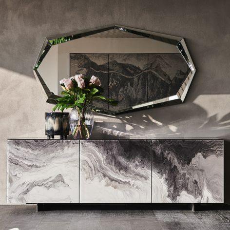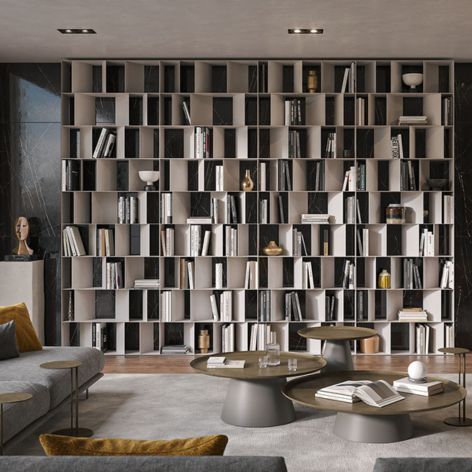 The Nautilus Bookcase, made in Italy, is edgy and sophisticated, with a steel structure and pearl embossed finish. Its modular design allows it to be stacked or set up side by side with additional bookcases, or used as a room divider.