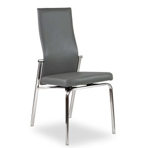 [description] => Addison Dark Grey Dining Chair W/Function, Polished Stainless Steel Frame/6112-18 Dark Grey Leather Seat And Back