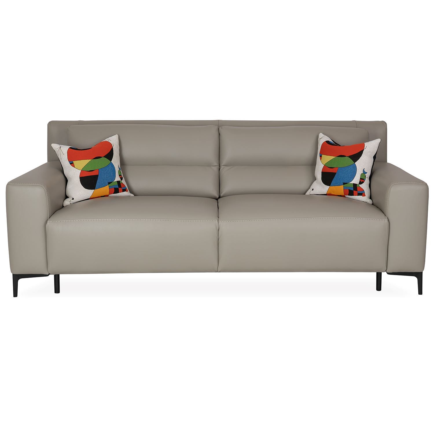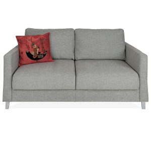 [0] => The Adriana Sleeper Sofa, made in Italy, combines distinguished style with functional versatility. Adriana is upholstered in light mushroom grey Giotto leather and has a wide profile with two amply sized seats, tufted back cushions, and slim black legs. Pull on the strap behind the backrest and the sofa will unfurl into a bed with a Queen-sized foam mattress that comfortably accommodates two adults.