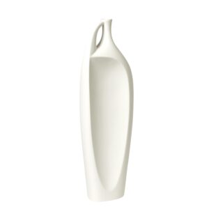[0] => The Large Albrecht Vase is made of glass with a white finish and a grey pattern on its lower half that resembles flowing liquid. The narrow neck of the vase shows off an oval-shaped aluminum ring, a uniquely edgy addition that is sure to invite a closer look. Pair with the Medium Albrecht Vase or display on its own for a one-of-a-kind accent.