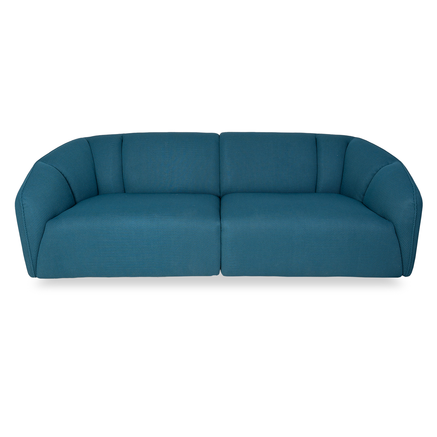Liven up your interior with the Alder Sofa, upholstered in textured fabric with a lagoon blue hue that instantly catches the eye. Featuring a modular design that connects discreetly at the middle, Alder sports a rounded silhouette with a back that flows continuously into the armrests, plus seat cushions that extend down to the floor for an overall impression of softness and comfort. Accent stitching on the backrests creates a playful look, while supportive inner coils in the seats give them a buoyant feel. Choose Alder for a unique vibe that unites the best of retro aesthetics and contemporary design.