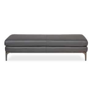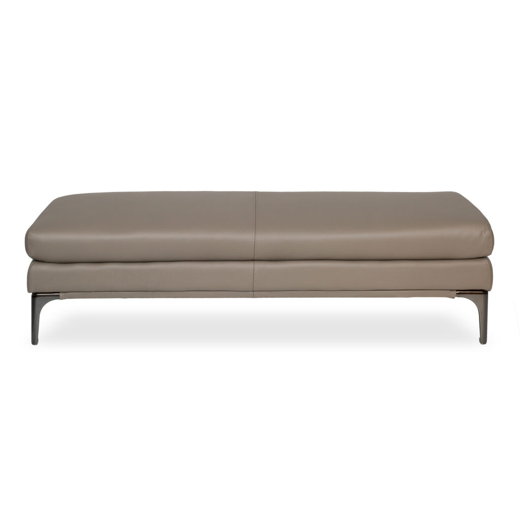 The Allure Bench features an elegant, elongated form perfect for accommodating multiple sitters. Upholstered in protected leather with a taupe "pine bark" color, this bench has accent stitching down its middle, shiny grey metal legs, and a pleasing layered look. Allure makes a great addition to an office waiting area, entryway, or living room in need of extra seating.