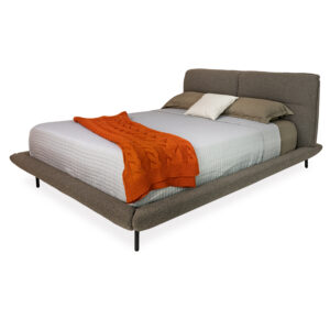 [0] => The Allure King Bed is inviting and luxurious, featuring protected leather upholstery in an earthy and versatile pine bark color. Allure's headboard is composed of two large cushions, each with accent stitching down the middle, that provide ideal backrests for reading or watching a show in bed. The lower frame is supported by dark grey metal legs and clad in the same leather as the headboard for a continuous look that will make you feel surrounded by comfort.