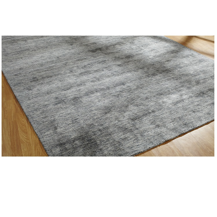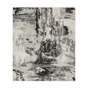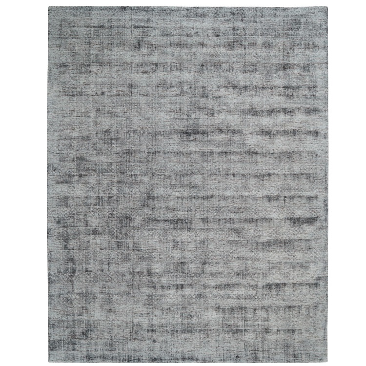 The Aloe rug is a contemporary, elegant rug with soft texture and variegated tones of anthracite, white, and grey. Aloe is handcrafted with 100% silkette yarns against a natural cotton backing in a Lori-Loom weave.
