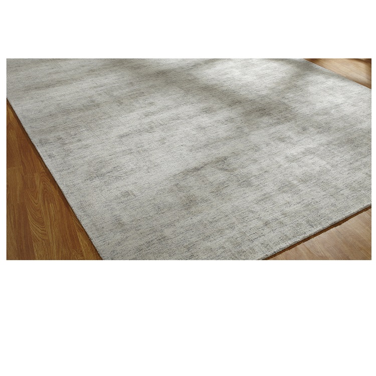 The Aloe rug is a contemporary, elegant rug with soft texture and variegated tones of white and light grey. Aloe is handcrafted with 100% silkette yarns against a natural cotton backing in a Lori-Loom weave.