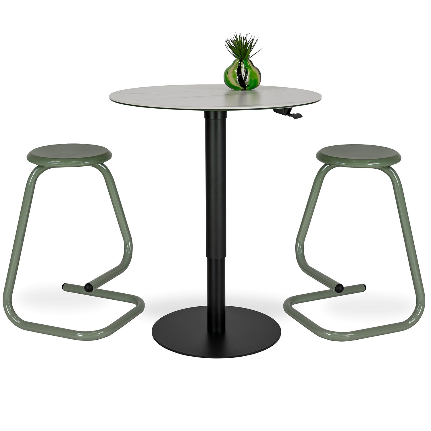 Providing clean versatility for your modern lifestyle, the Alora Pub Table features a sleek profile and a smooth height-adjustment mechanism that adapts to your needs at a touch of the hand. Press the lift paddle under the table to activate the gas-charged column and raise Alora to bar or counter height. Alternately, press down on the tabletop while touching the paddle to lower Alora as low as coffee table height. Featuring a circular tabletop in off-white ceramic marble and a base in black metal, the Alora Pub Table goes effortlessly with you from entertaining to dining, to relaxation, and more.