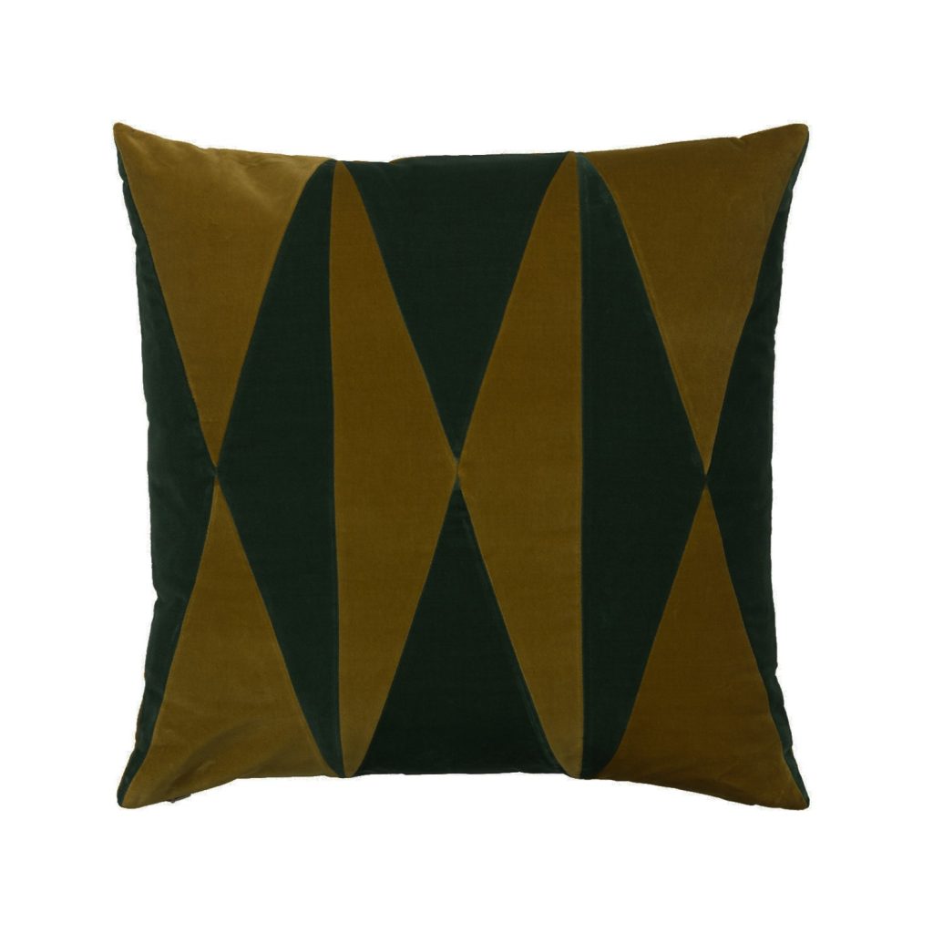 [0] => The Anneli Pillow was designed by Danish artist Christina Lundsteen and features a diamond pattern in dark peacock green and rich carmel brown. Hand made in Denmark, this pillow is made from 100% cotton velvet and has an anti-bacterial down filling. Anneli's cheerful geometric design will brighten up any room.