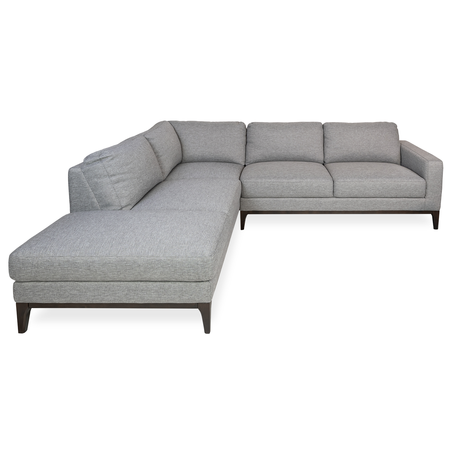 [0] => anson sectional - raf 2 seat corner, laf 2 seat terminal end - talent 05 light grey fabric w/ hs304 walnut base
