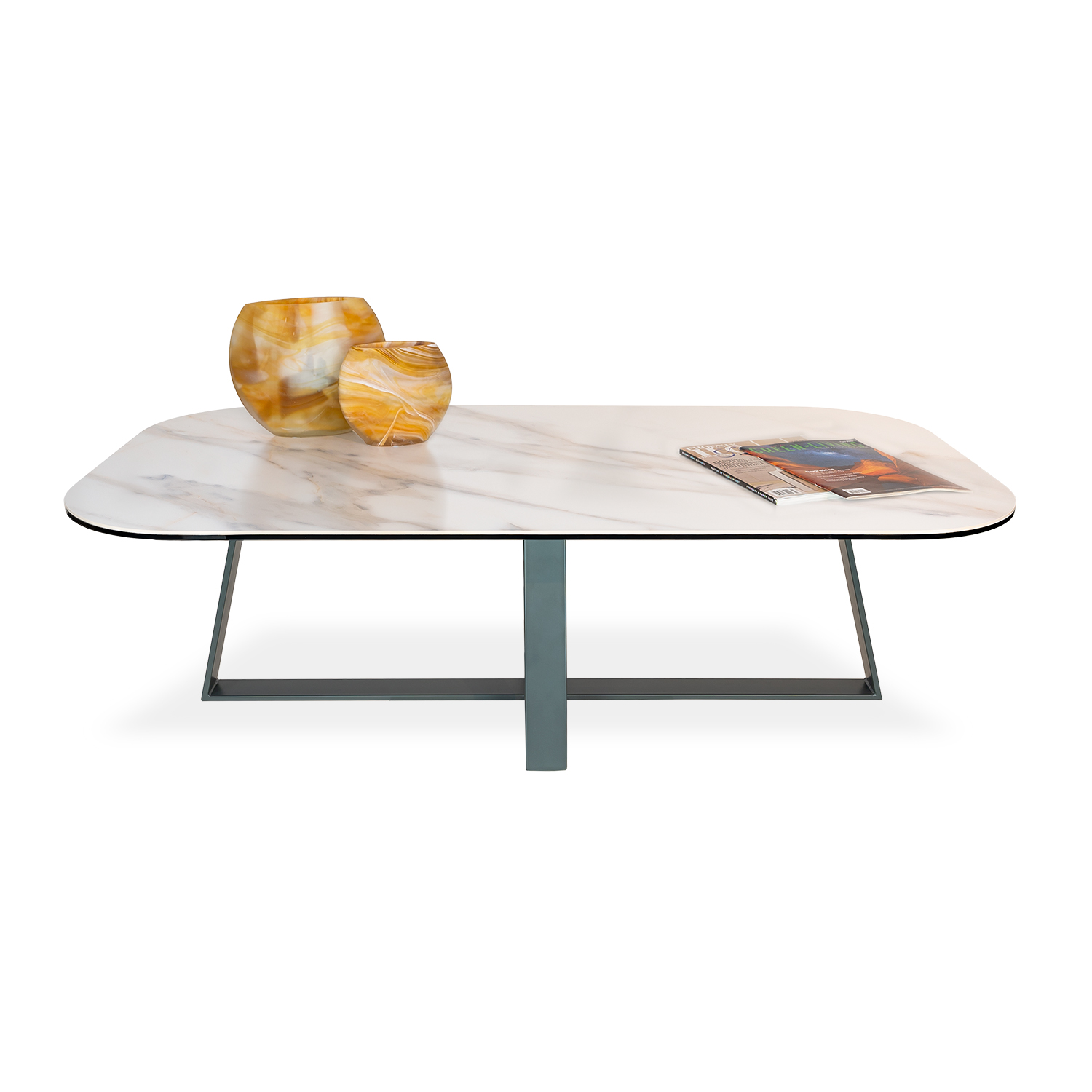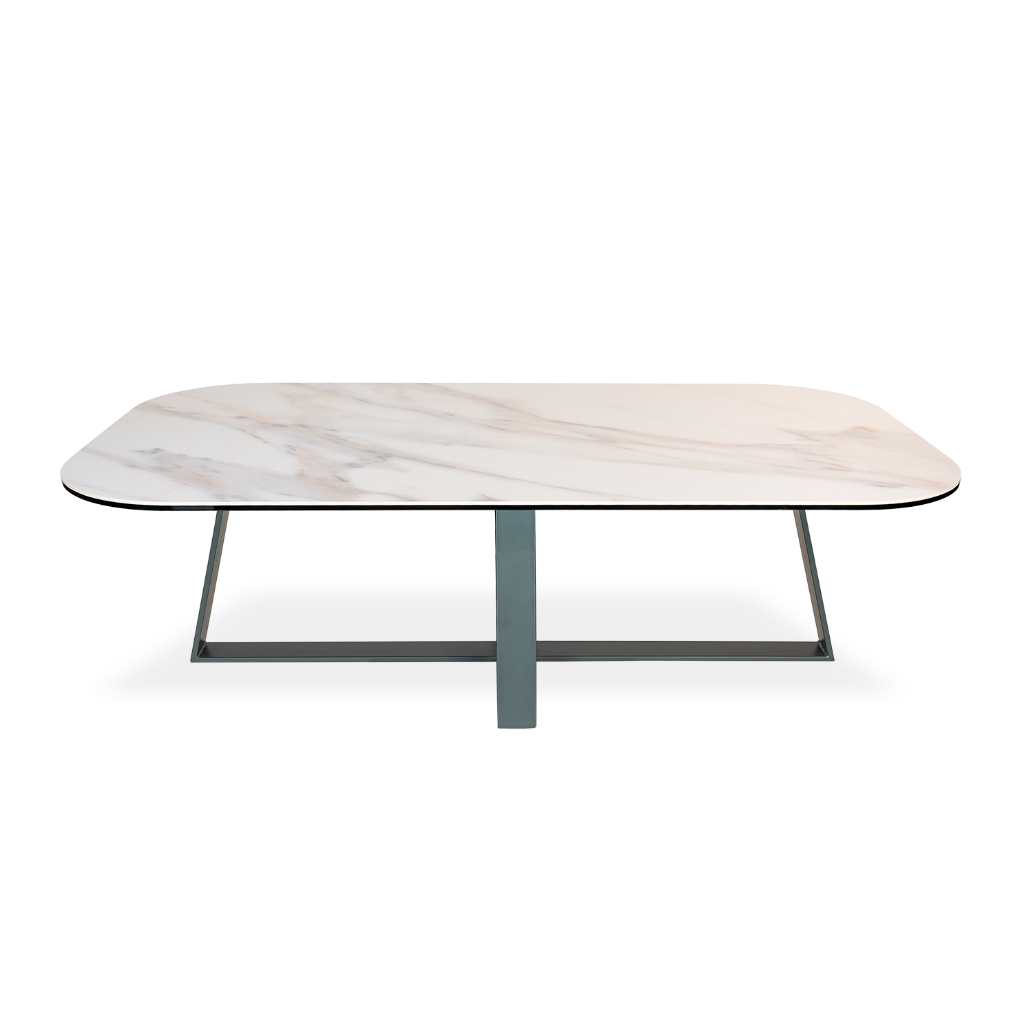 [0] => The Arezzo Coffee Table has a smooth, eye-catching tabletop and sculptural frame. The rounded corners of the top complement the cool, marbled effect of its Carrara ceramic, while the angular anthracite base creates a symmetrical look that feels perfectly balanced. Pair with the Arezzo End Table for a cohesive feel.