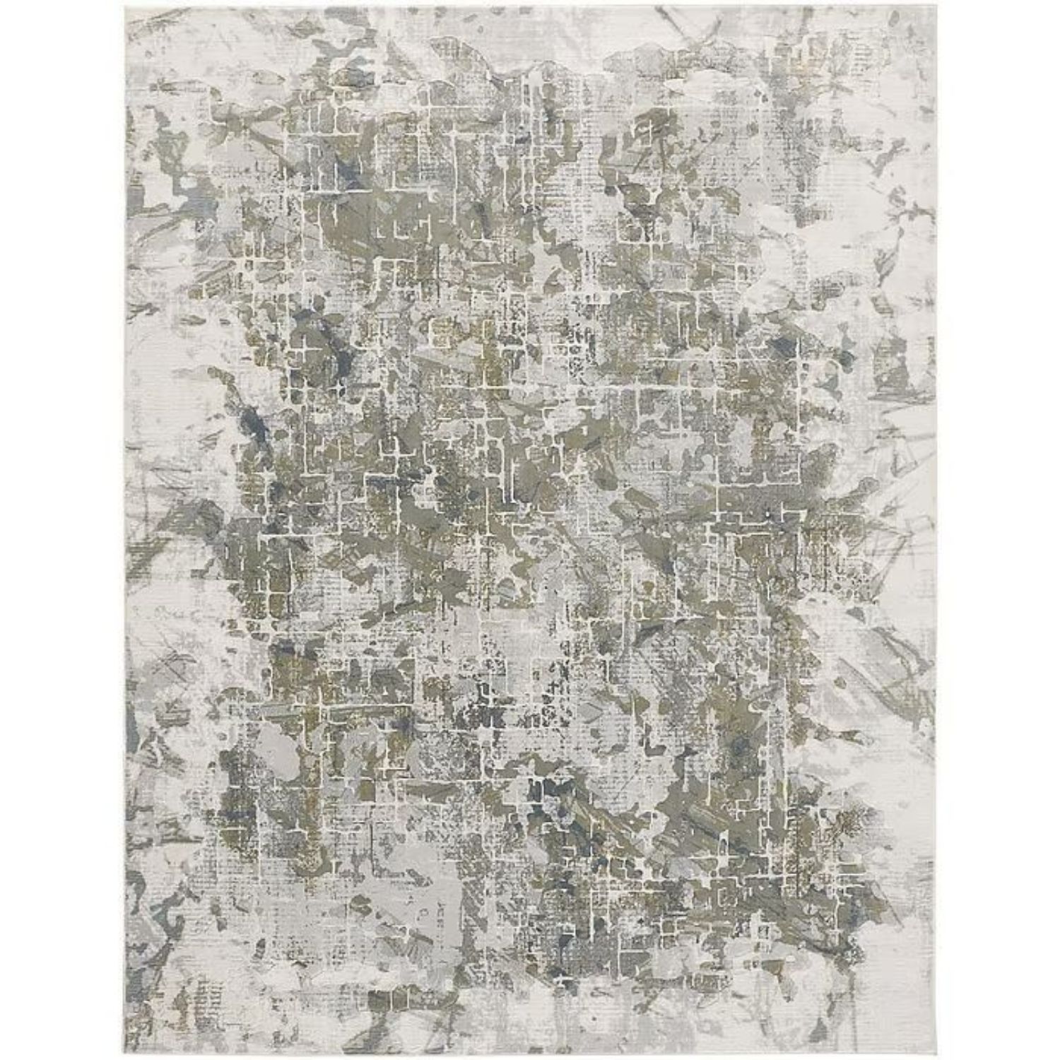 Inspired in equal part by ethereal landscapes and geometric cityscapes, the Atwell Rug boasts a pattern in muted tones of green, blue, and ivory. A delicate gridded design shows through patches of subdued color, providing a striking sense of contrast and visual depth. Power-loomed in Turkey from polypropylene, Atwell has a durable construction ideal for high-traffic areas.