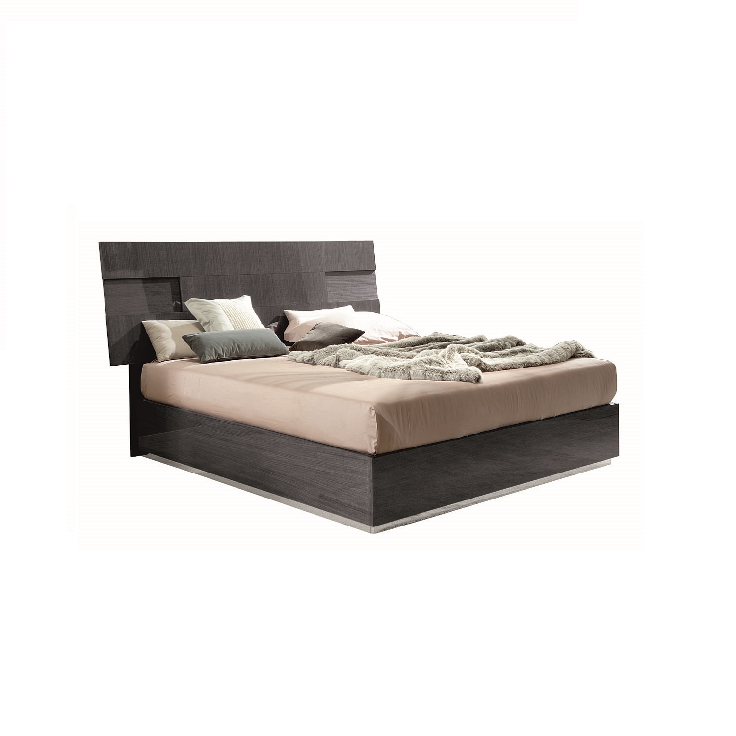 The Bella Grigio King Bed, made in Italy, is available in smooth and beautiful grey Koto wood veneer with a high gloss finish. The Bella Grigio is a contemporary platform bed with eye-catching geometric lines and metal accents. The bed features an LED headboard light system that accents the stunning construction of the headboard and has orthopedic springs.