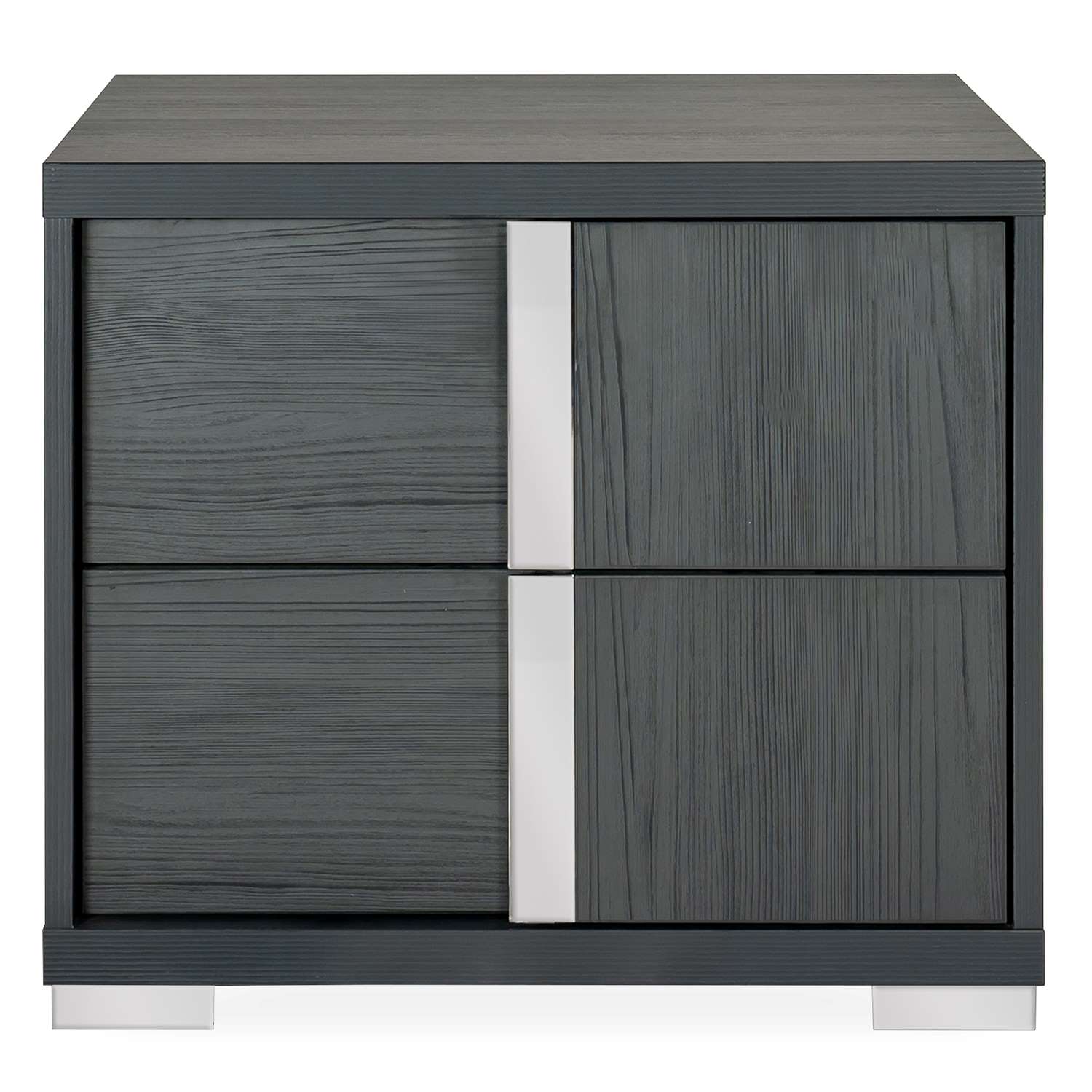 The Bella Luna nightstand, available in matte black pine with an eco-veneer finish, has a sleek, minimalist design with clean lines and beautiful style. An attractive metal accent runs down the center of each drawer, artfully concealing the drawer pull. The Bella Luna nightstand complements the Bella Luna bed.
