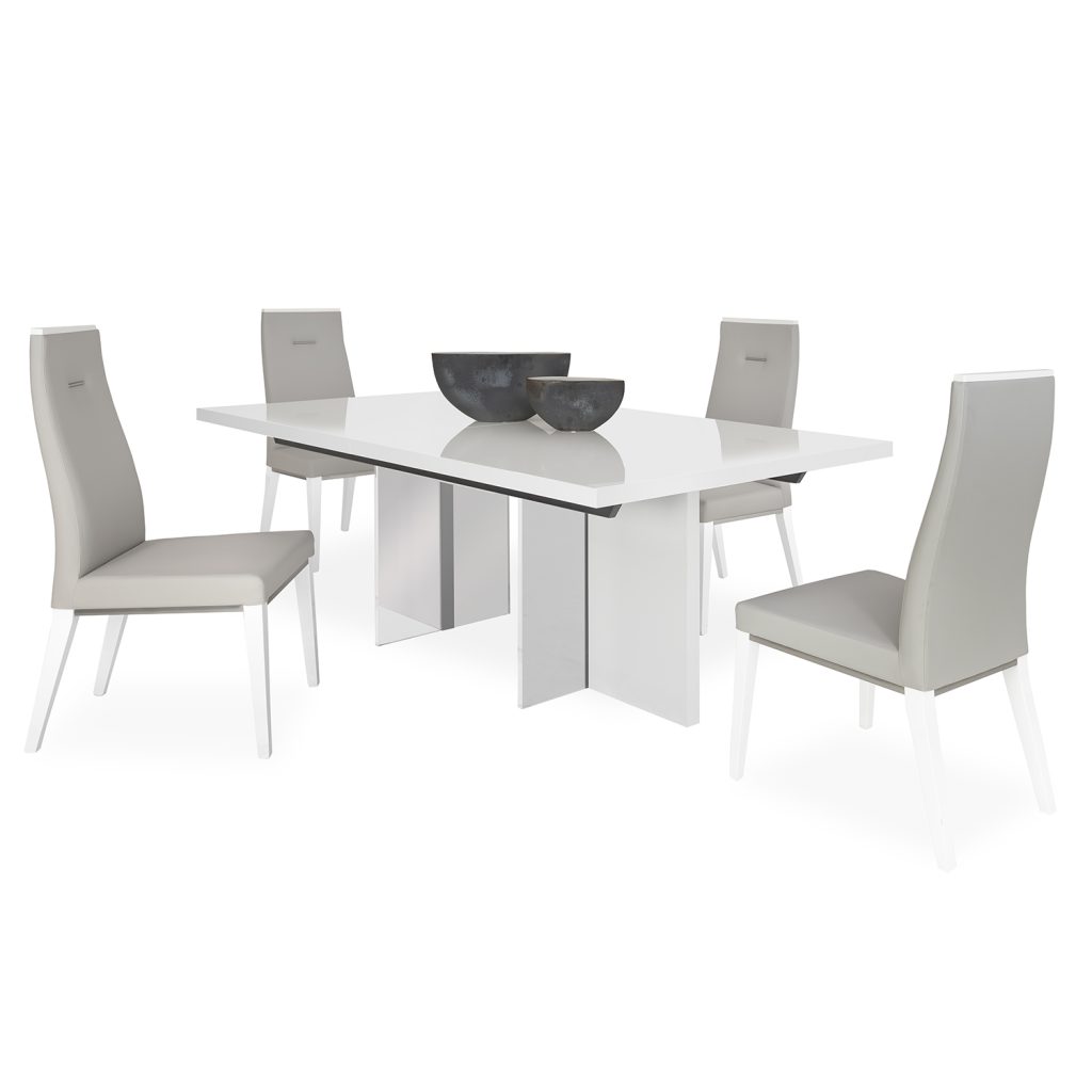 [description] => Bella Grigio Dining Table 77x42.5" W/1 Leaf Extends To 98" High Gloss Grey Koto -