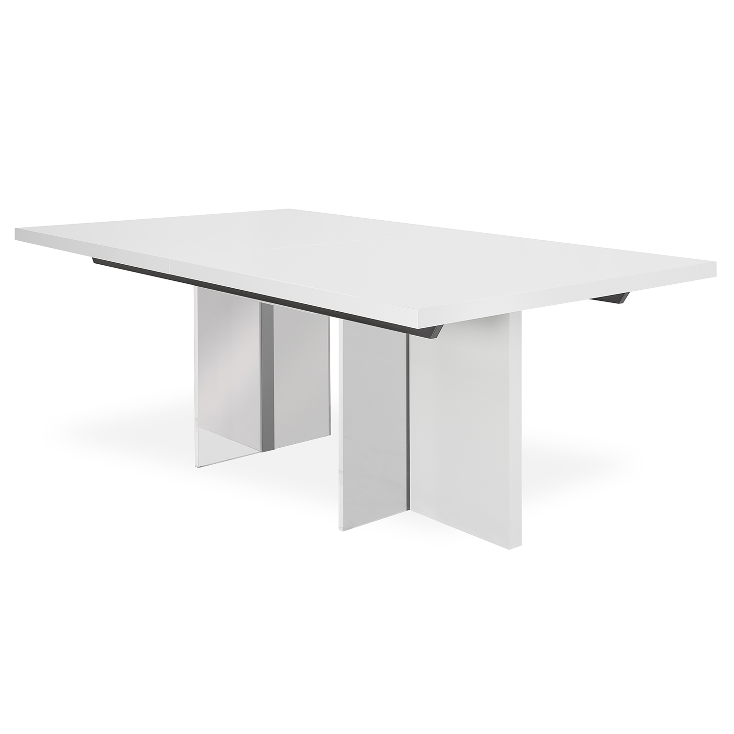 The Bella Vita dining table, made in Italy, captures the eye with its crisp geometric lines and high white gloss finish. Bella Vita brings bright, clean, and refreshing design to your dining space and is at once contemporary and timeless. The table extends from 77'' to 98'' and has self-storing leaves for added convenience and functionality.