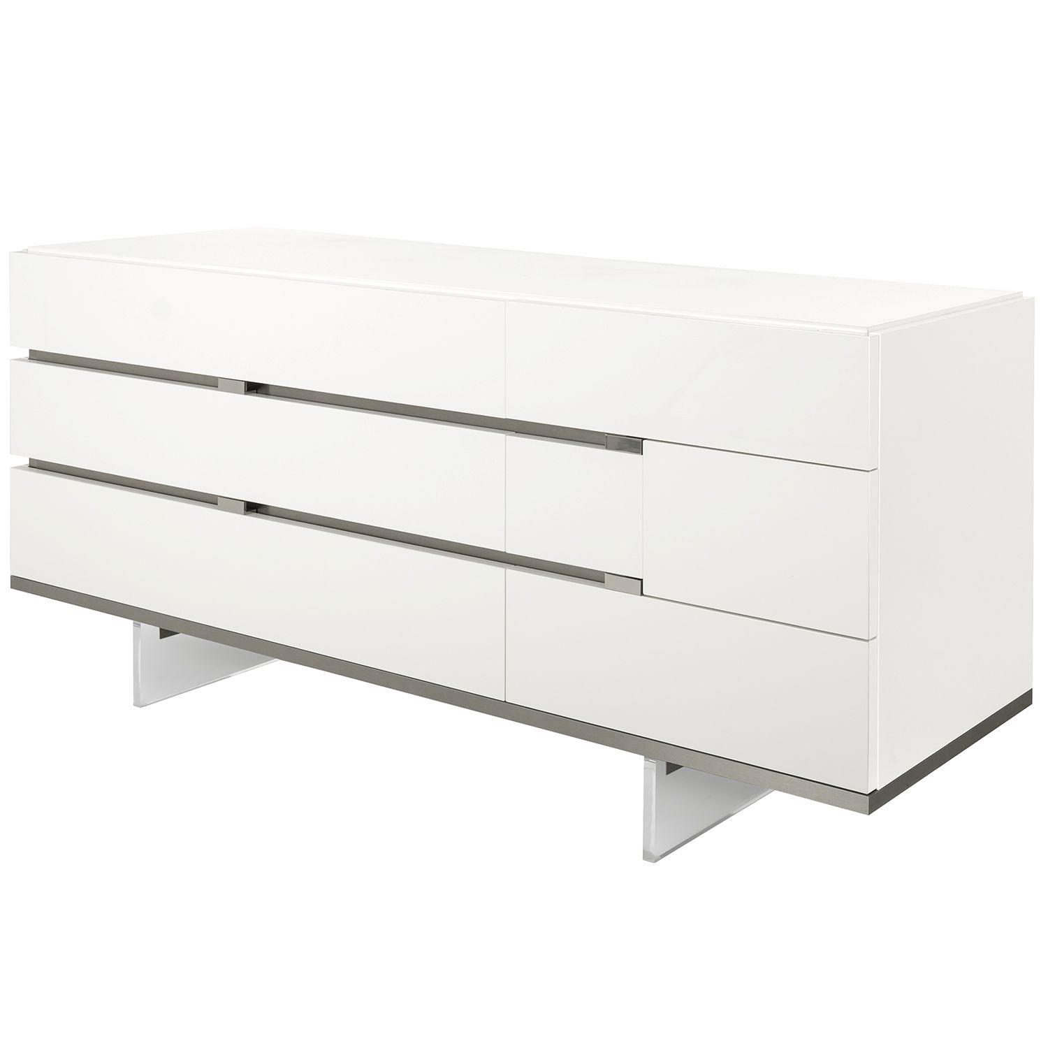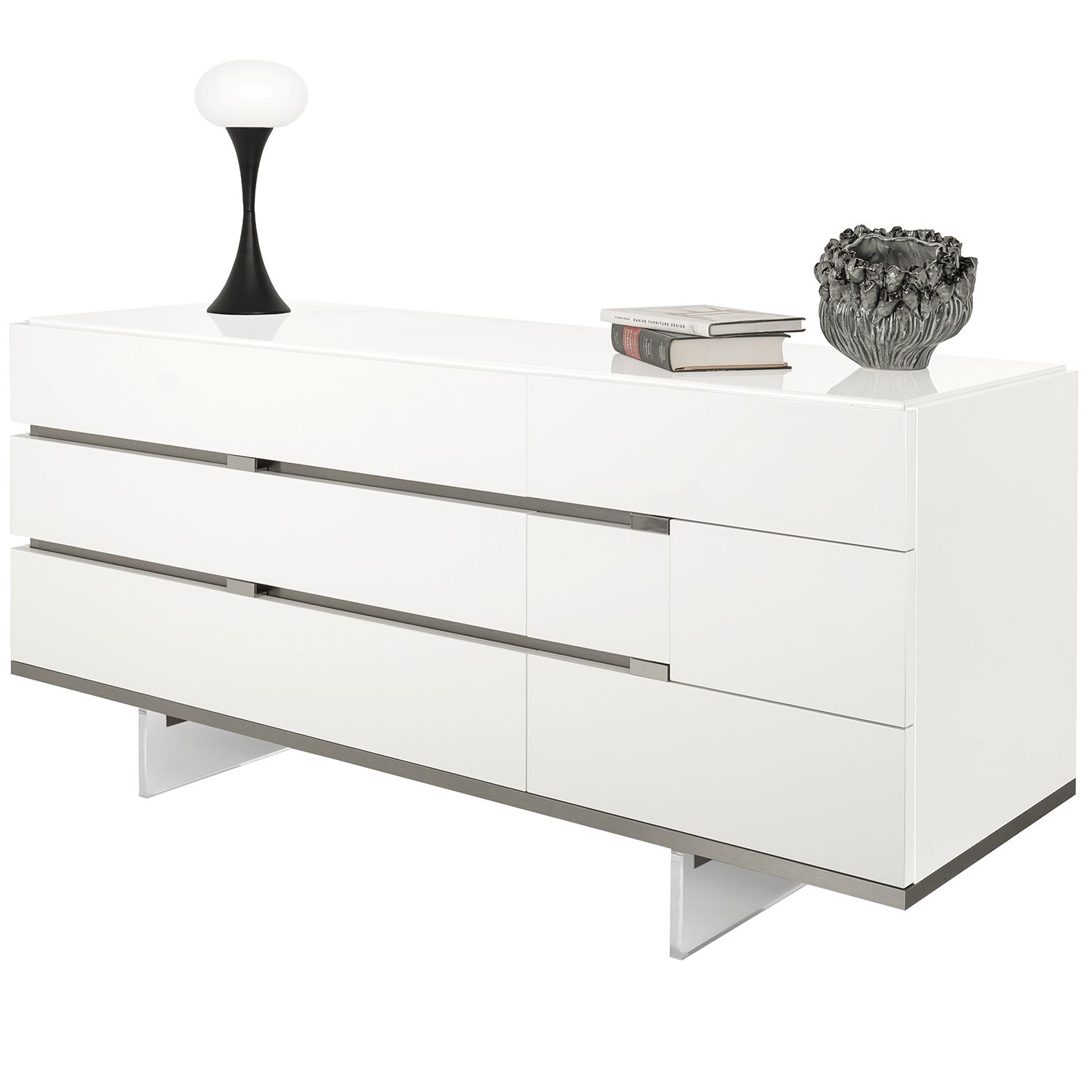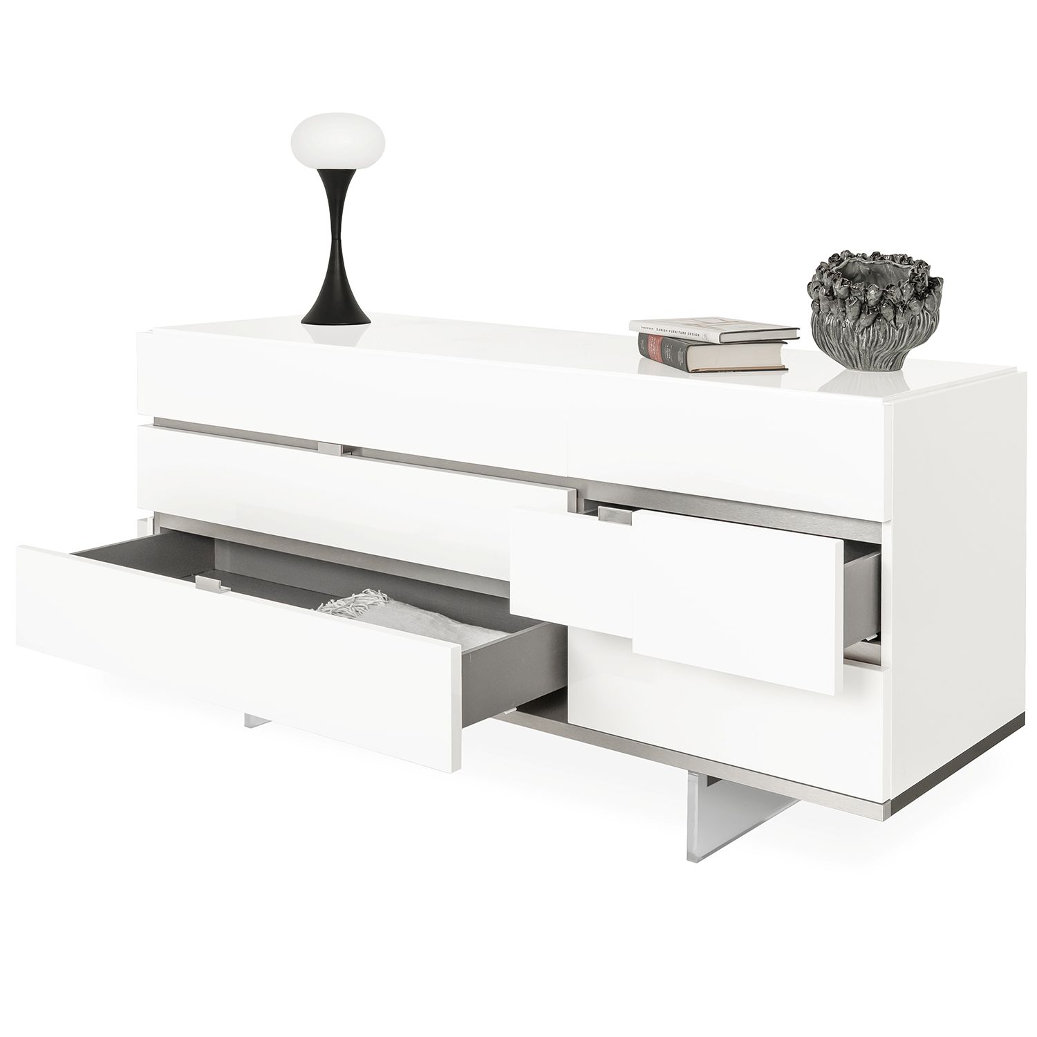 The Bella Vita dresser, made in Italy, captures the eye with its crisp geometric lines and high gloss white finish. Bella Vita brings bright, clean, and refreshing design to your bedroom space and is at once contemporary and timeless. This dresser has six spacious drawers and attractive metal accents.