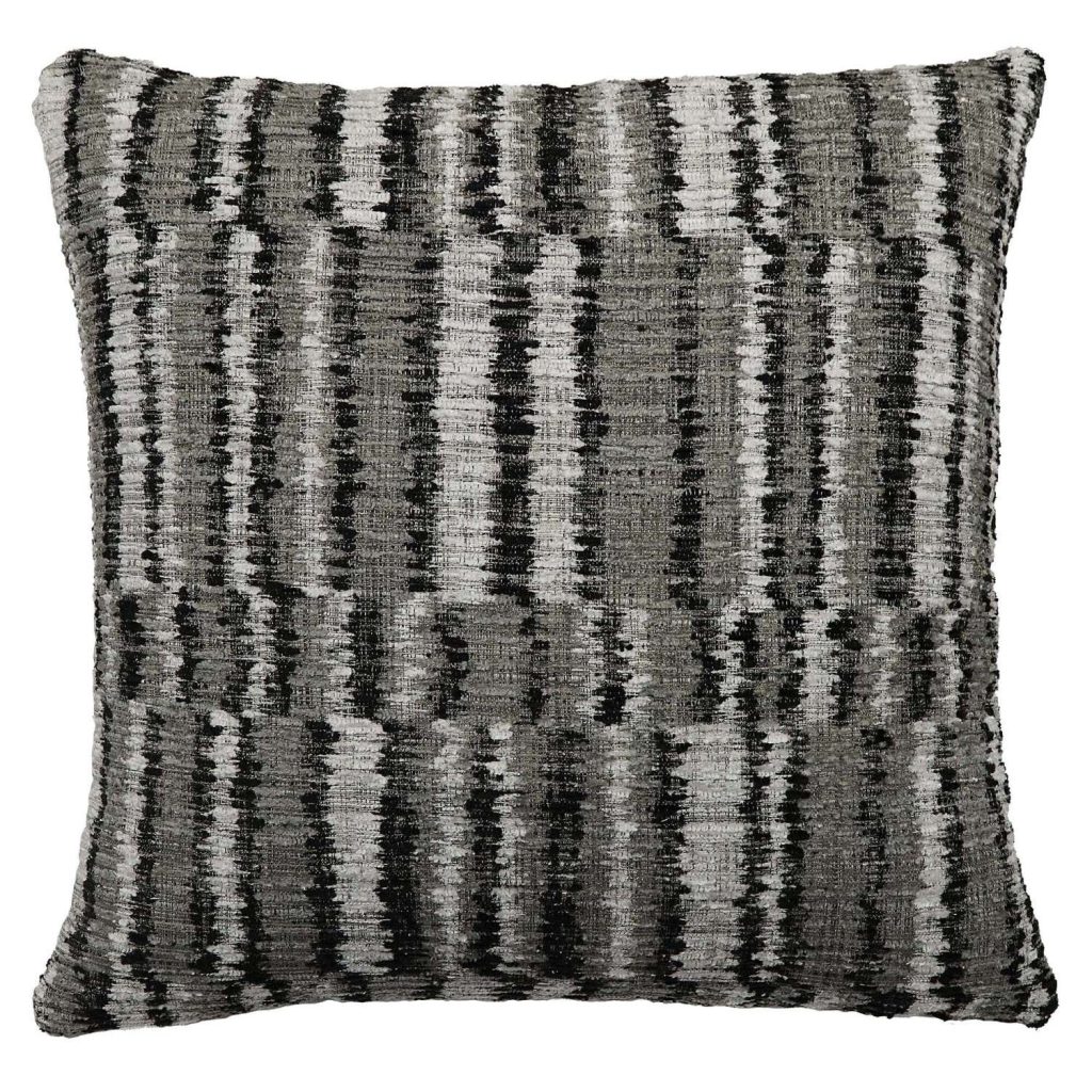 The Biryani Pillow features a textured surface whose pattern of blurred stripes in black, white, and grey create a bold and edgy look. A feather filling gives this pillow a satisfying plumpness, while a discreet zipper allows the cover to be removed for spot-cleaning if needed.