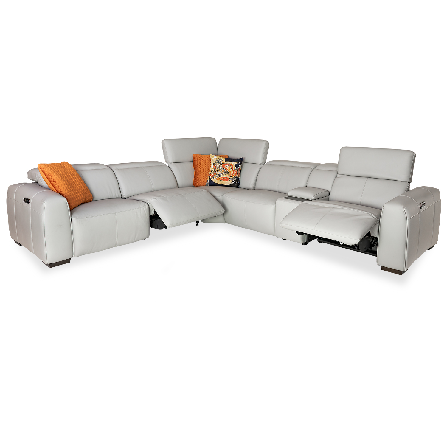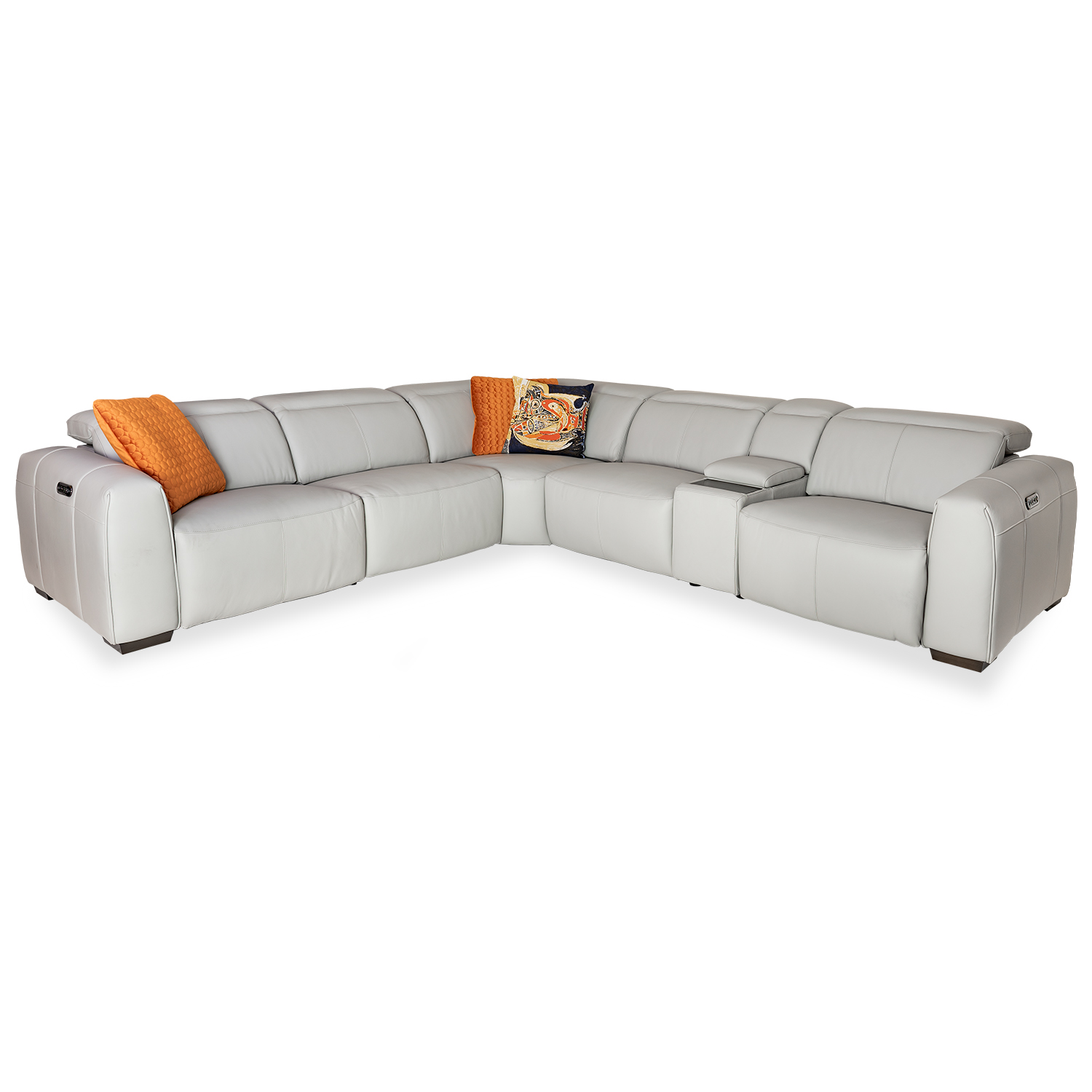 [0] => brendan sectional - 1.25e1iu laf end w/pwr, 1.25na1v armless chair w/pwr, sta-mul10 console, sqc corner, 1.25napr armless chair, 1.25er1u raf end w/pwr , be-519e grey leather gr.2