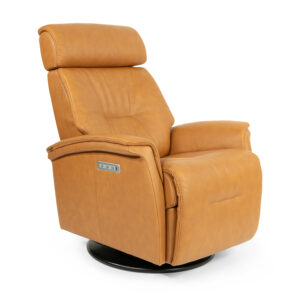 [description] => Brighton 376 Cognac Leather Swivel Chair Recliner W/Power Motion - Ebs Black Base /