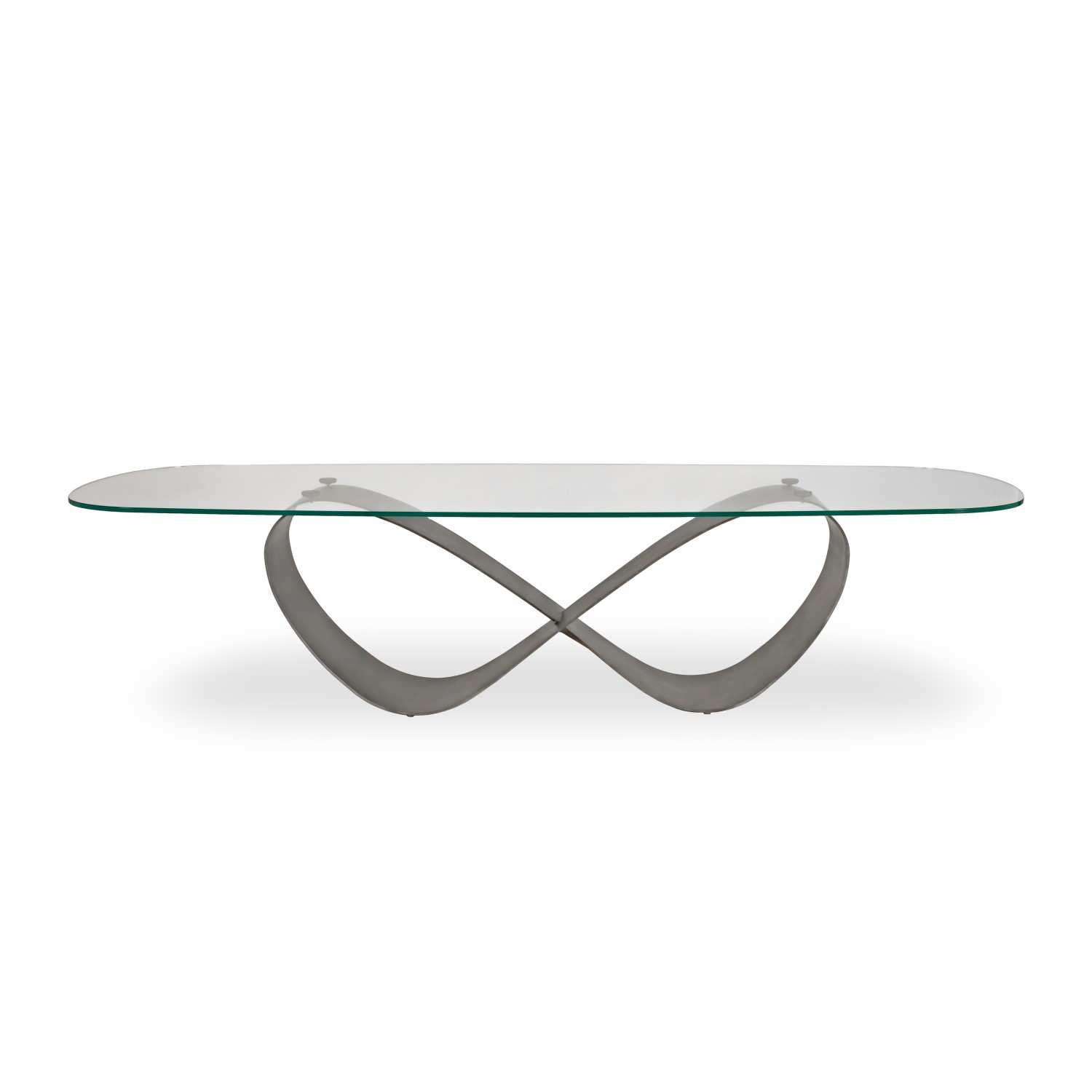 The Butterfly Dining Table, by Cattelan Italia, is a flowing work of art that takes its inspiration from nature. The ribbon design of the sculptural steel base recalls the graceful wings of a butterfly, while the brushed grey finish gives the table an industrial feel. Extra clear glass allows the base to be appreciated from all angles, and the tabletop's gently rounded corners mirror the curved shape of the base. Butterfly's refined style and eye-catching design will make it the centerpiece of your dining room.