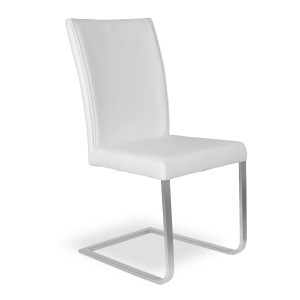 [description] => Marlo Dining Chair W/Flex Sleigh Base - Brushed Steel / 2201 Island White Leather