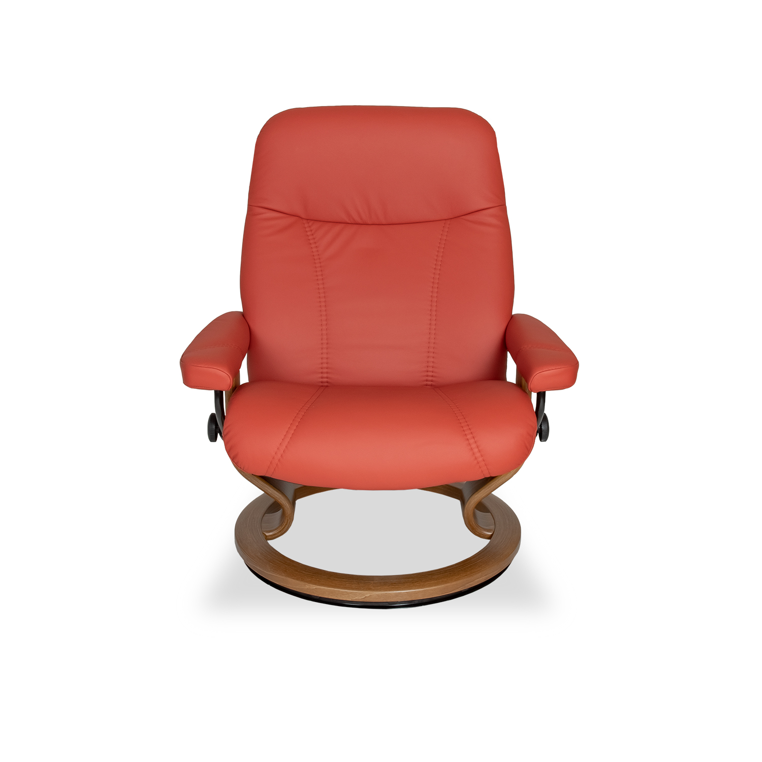 The Consul Large Chair and Ottoman, available in henna Batick leather with a teak classic base, is a classic, high quality Stressless® design that truly has it all — aesthetics, design value, and comfort-ensuring mechanisms. The Consul is equipped with Plus™ and Glide systems, which allow the chair to provide continuous support for the head and lower back, while also adjusting the reclining angle based on shifts of the body. Consul is a classic Stressless® recliner that fits easily into any home.