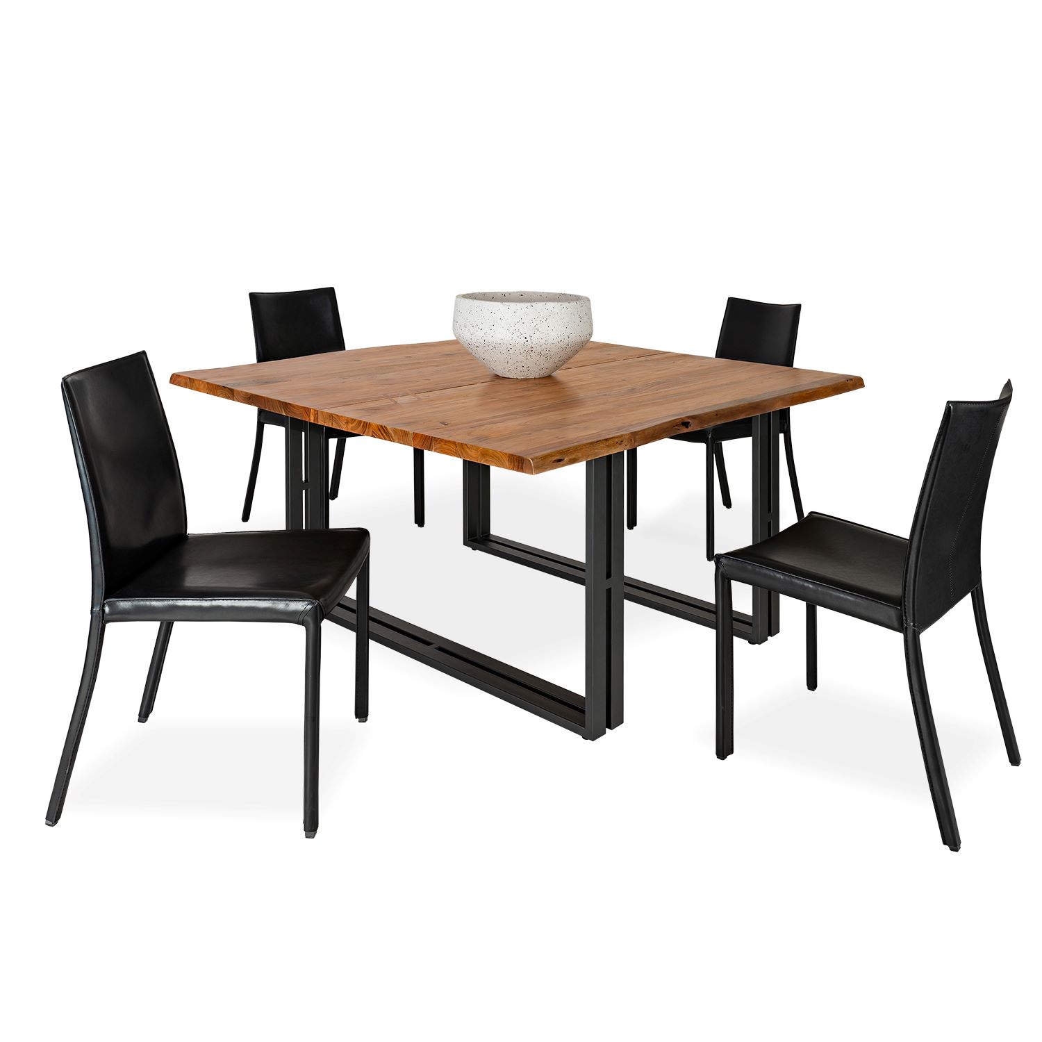 [0] => The Copenhagen Square Dining Table embodies the perfect intersection between modern design and organic aesthetics. This table features an acacia wood top with a beautiful natural grain, supported by a raw steel base with a striking double-leg construction. Wooden strip accents across the tabletop serve both to provide stability and to highlight the formed-by-nature character of this piece. With its contemporary design that boldly fuses the biological and the industrial, the Copenhagen Square Dining Table promises to make each meal one to remember.
