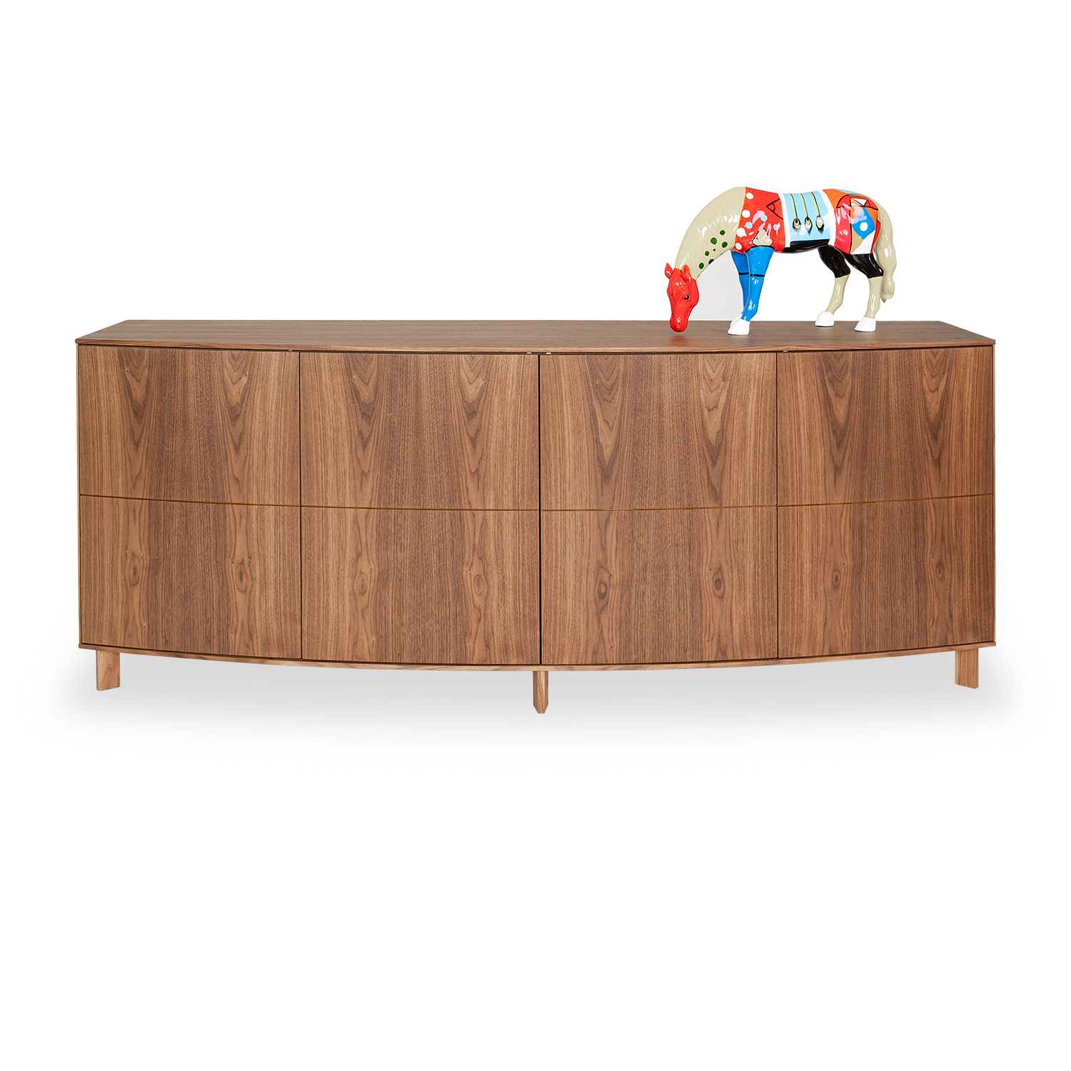 [0] => curve sideboard walnut oil, 4 door/ 2 drw, 77.5x18.1x31.5"