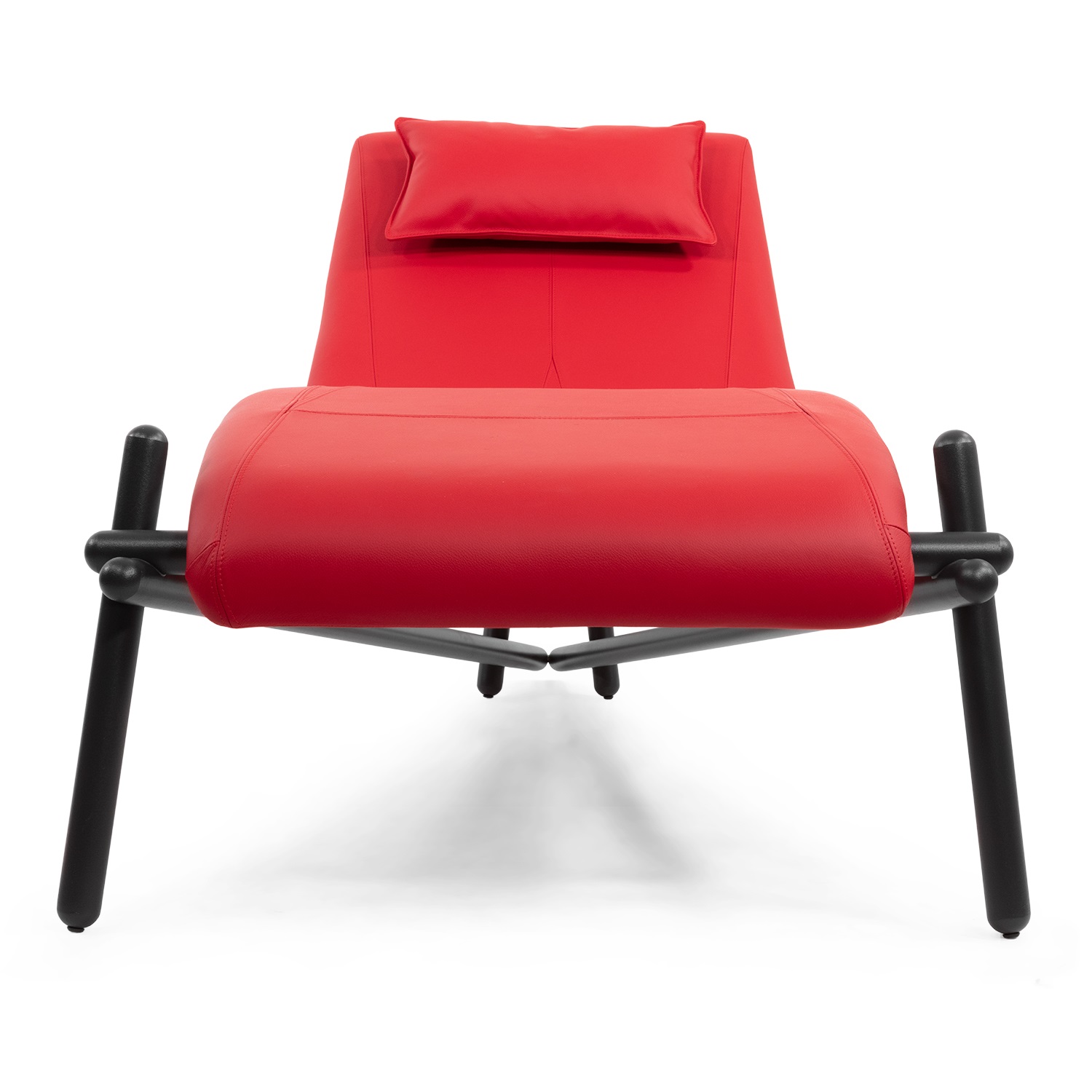 [0] => The Donovan Chaise Lounge by Cattelan Italia features stunning red leather upholstery and a graphite metal base. Made in Italy, this chaise is sleek and contemporary, with dynamically patterned stitching that matches the artistry and angular design of the rounded frame. The head pillow is positioned to comfortably support your head and neck, while the subtly rounded frame provides a space to rest and rejuvenate. A sculptural, elegant piece designed to bring you comfort in style.