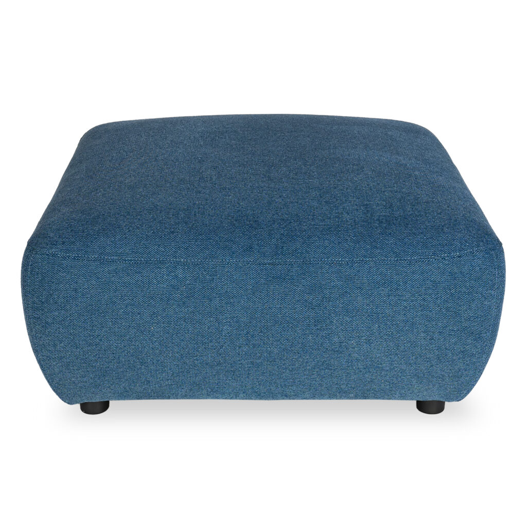[0] => The Dutton Ottoman features a plush, oversized design optimized for comfort with its soft lines and blue Belfast fabric upholstery. Woven from a blend of polyester and acrylic, Belfast fabric is built to resist water- and oil-based stains, as well as everyday wear and tear, so you can relax with peace of mind. Featuring a rounded square shape and discreet black legs, this ample and cozy ottoman invites you to put your feet up and unwind. Pair this ottoman with a matching Dutton chair, or with multiple pieces in the Dutton collection to form a customized, modular sectional.