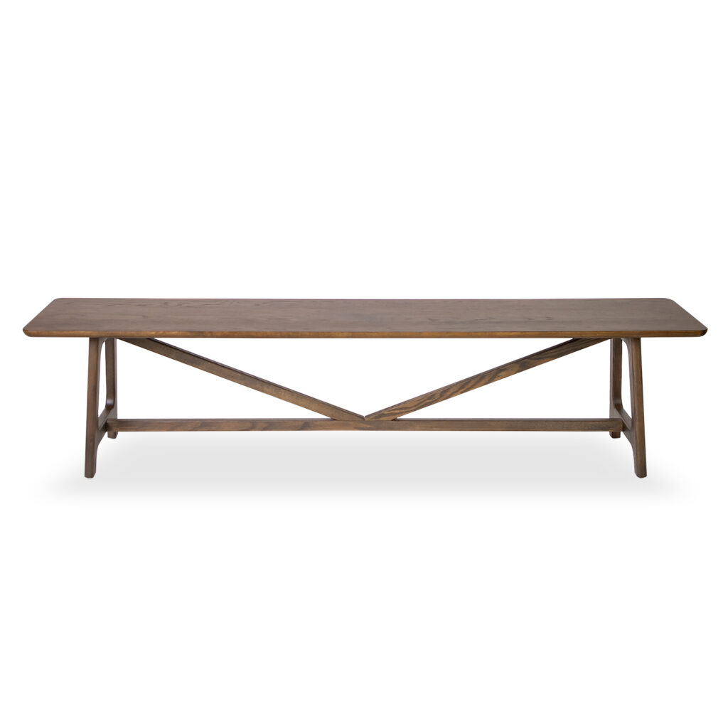 [0] => Bring a classic look and enduring style to your interior with the Enigma Bench. Made with a brown oak finish, Enigma features a smooth, wide top that can accommodate up to four diners, as well as a masterfully crafted trestle base with striking diagonal supports. The perfect complement for the Enigma Rectangular Dining Table, this bench can also make a statement in any space where extra seating is needed, from the living room, to the bedroom, to the entryway.