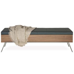 [description] => Gala Bench With Grooved Walnut Sides, Graphite Leather Top, Titanium Legs