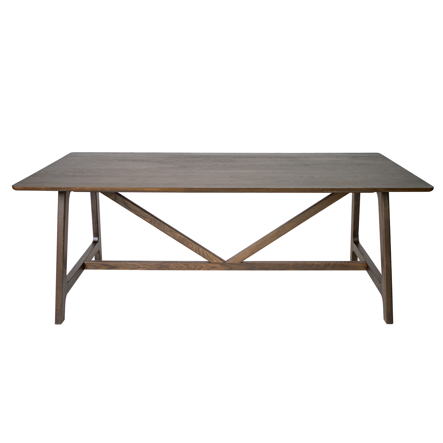 Bring a classic look and enduring style to your dining room with the Enigma Rectangular Dining Table. Made with a brown oak finish, Enigma features a smooth tabletop with gently rounded corners and a masterfully crafted trestle base with striking diagonal supports resting on a low beam. Perfectly paired with other items in the Enigma collection, this table can seat up to eight diners for lively gatherings and memorable meals.