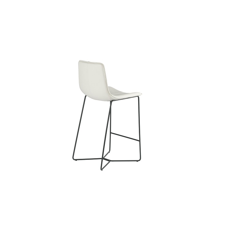 The Filu barstool, available with white leather upholstery, has a rounded geometric design with its square seat and linear back cushion stitching. Filu has an urban, minimalist look with its powdercoated steel frame and streamlined design.