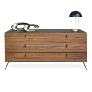 [description] => Gala 1 Dresser With Six (6) Drawers In Walnut With Color Glass, Graphite Lacquer And Titanium Legs And Accents.