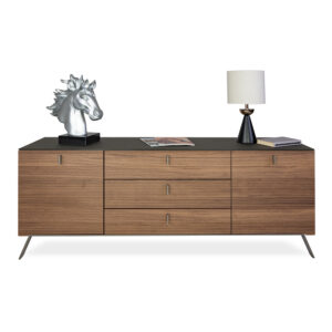 [description] => Gala 1 Dresser With Three (3) Drawers And Two (2) Doors In Walnut With Color Glass, Graphite Lacquer And Titanium Legs And Accents.