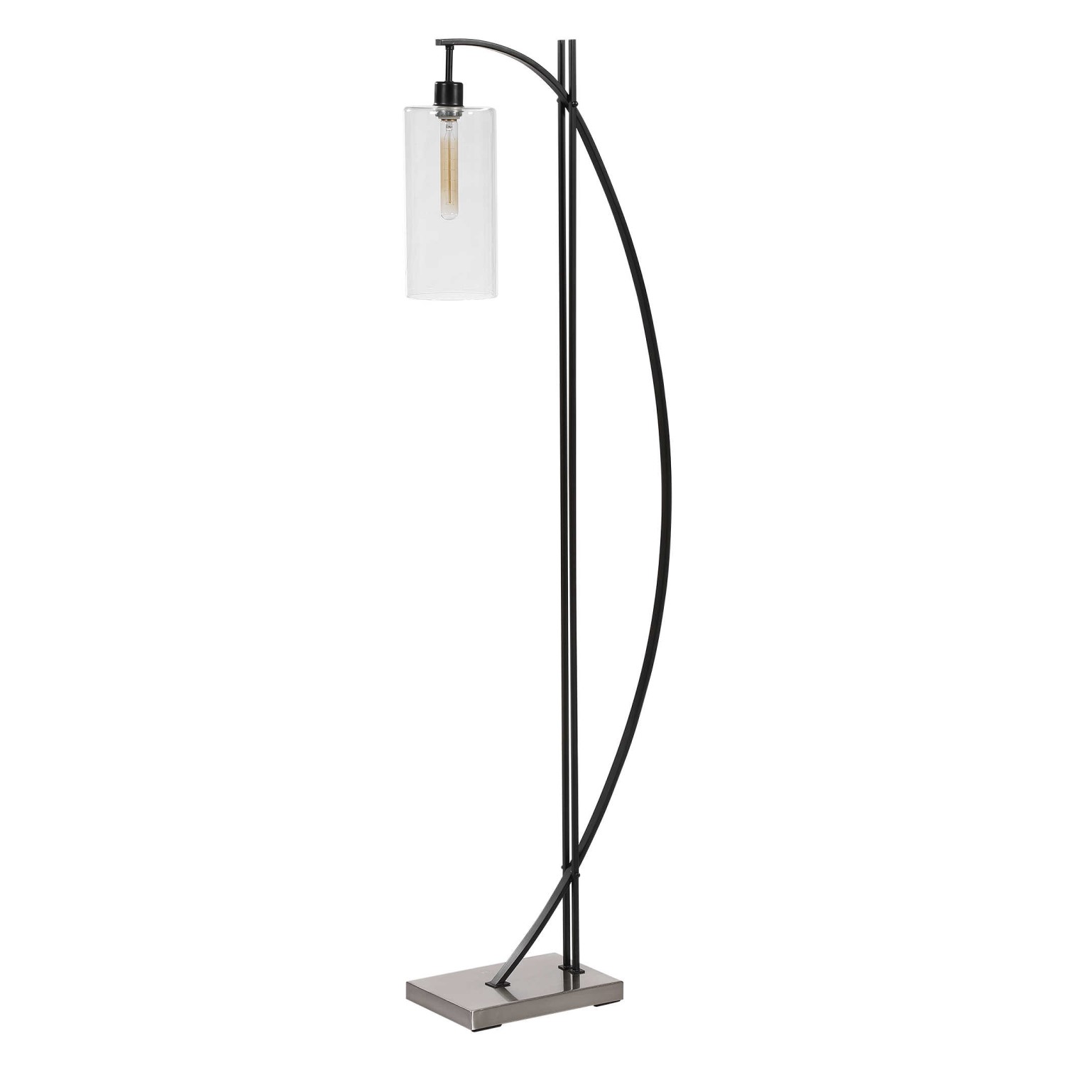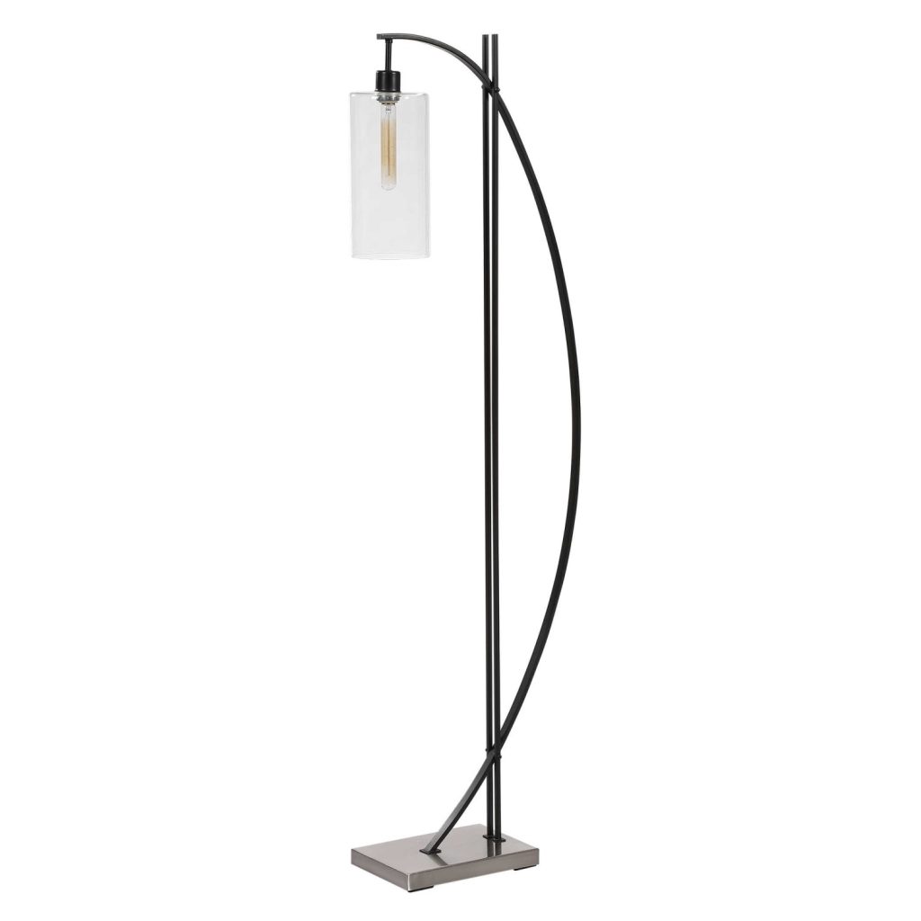 [0] => The Gateway Floor Lamp has a stylish contemporary look, with a steel-plated brushed nickel base, dual stem in matte black, and a clear glass globe. A 60-watt Edison bulb is included, giving the lamp a hint of traditional style. The Gateway Floor Lamp has an on/off cord switch.
