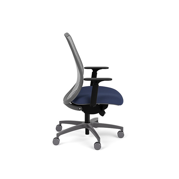 [0] => genie flex mid back chair w/full function arms, gray frame, thermoplastic polyurethane, syncro control w/ seat slide, black base, hard floor castors - origin sapphire- gr.a list 1500