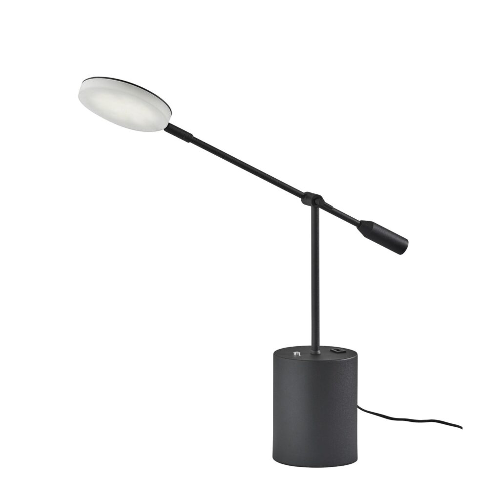 Sync up your office lighting with your circadian rhythm with the sleek and contemporary Grover LED Desk Lamp. Grover features a push switch which allows full control over 3 different color temperatures and full range of brightness settings. The black cylindrical base has a USB port that allows you to recharge your devices whenever you need. The base complements the black metal shade which also has a frosted plastic diffuser.