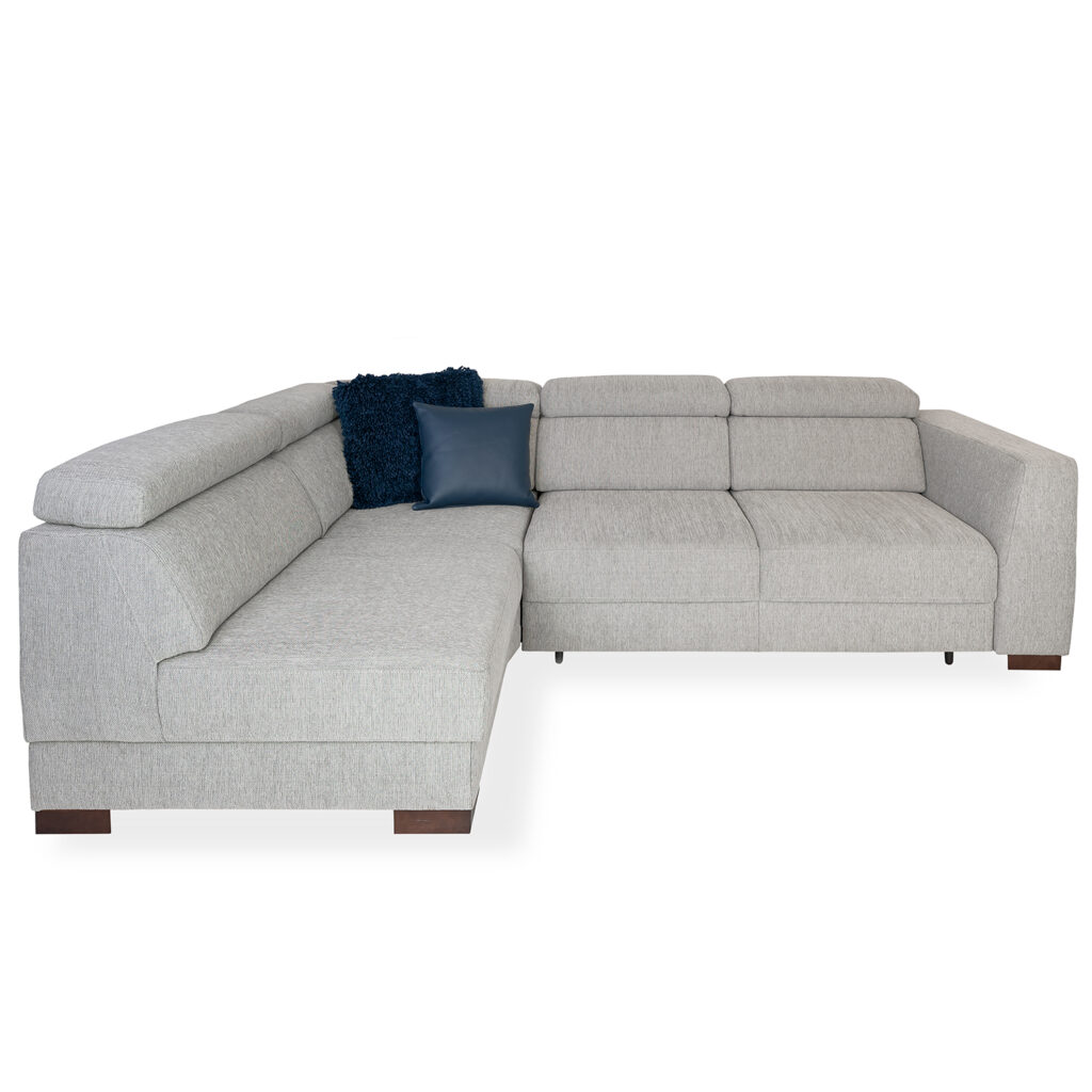 [0] => The Halti Sleeper Sectional, named after the highest mountain in Finland, features stone fabric upholstery and walnut wood legs. Halti is a multifunctional sectional sleeper that has a variety of functions, including: seat depth adjustment; neck-rest height adjustment through racheting headrests; a sleeper function when the seat is pulled out fully; and storage when the chaise portion is lifted. Wide seats and variegated grey tones further contribute to the homey, comfortable tone of this piece. Halti's versatility and custom comfort will bring rest and functionality to you and guests within your home.