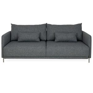 [0] => Made by Luonto of Finland, the Haven King Sleeper Sofa unites comfort, style, sustainability, and versatility in a single welcoming design. Upholstered in grey Atlantic fabric made from recycled polyester and standing on wood and metal legs, Haven features deep, wide seats that make for effortless relaxation. The two back cushions have a thick, plush feel and are complemented by two included bolster pillows to maximize your comfort. When it's time to convert Haven into a bed, simply pull the bottom edge upward and outward to create a King-sized bed that will have you or your guests sleeping soundly in no time.