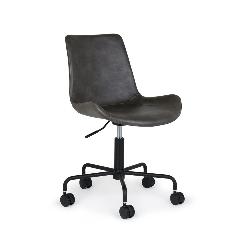 Shown in vintage grey faux leather with a black base and height adjustment function.
