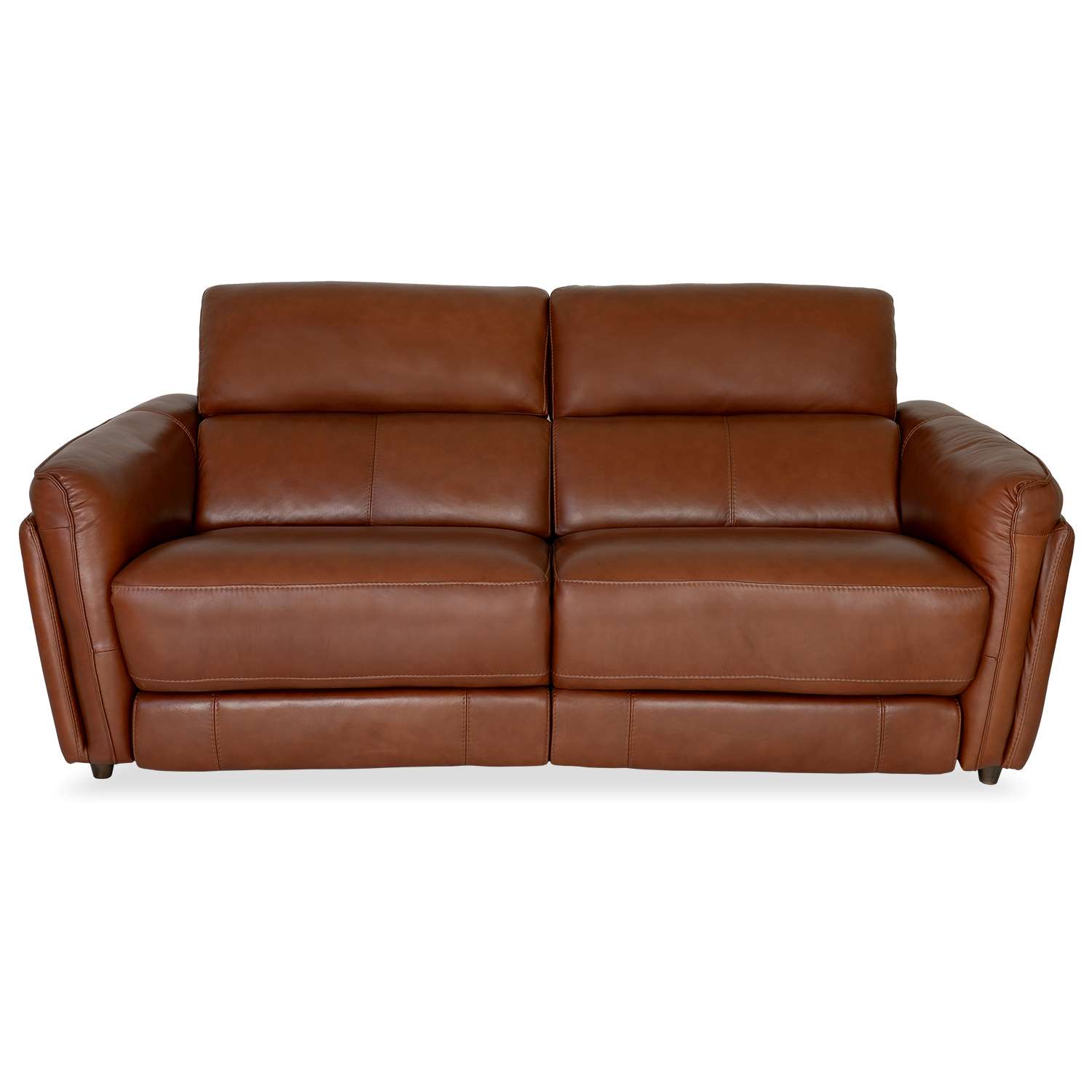 [0] => jake 2 seat 81" sofa with power recline and headrest. silky 297e cognac top-grain leather grade 4