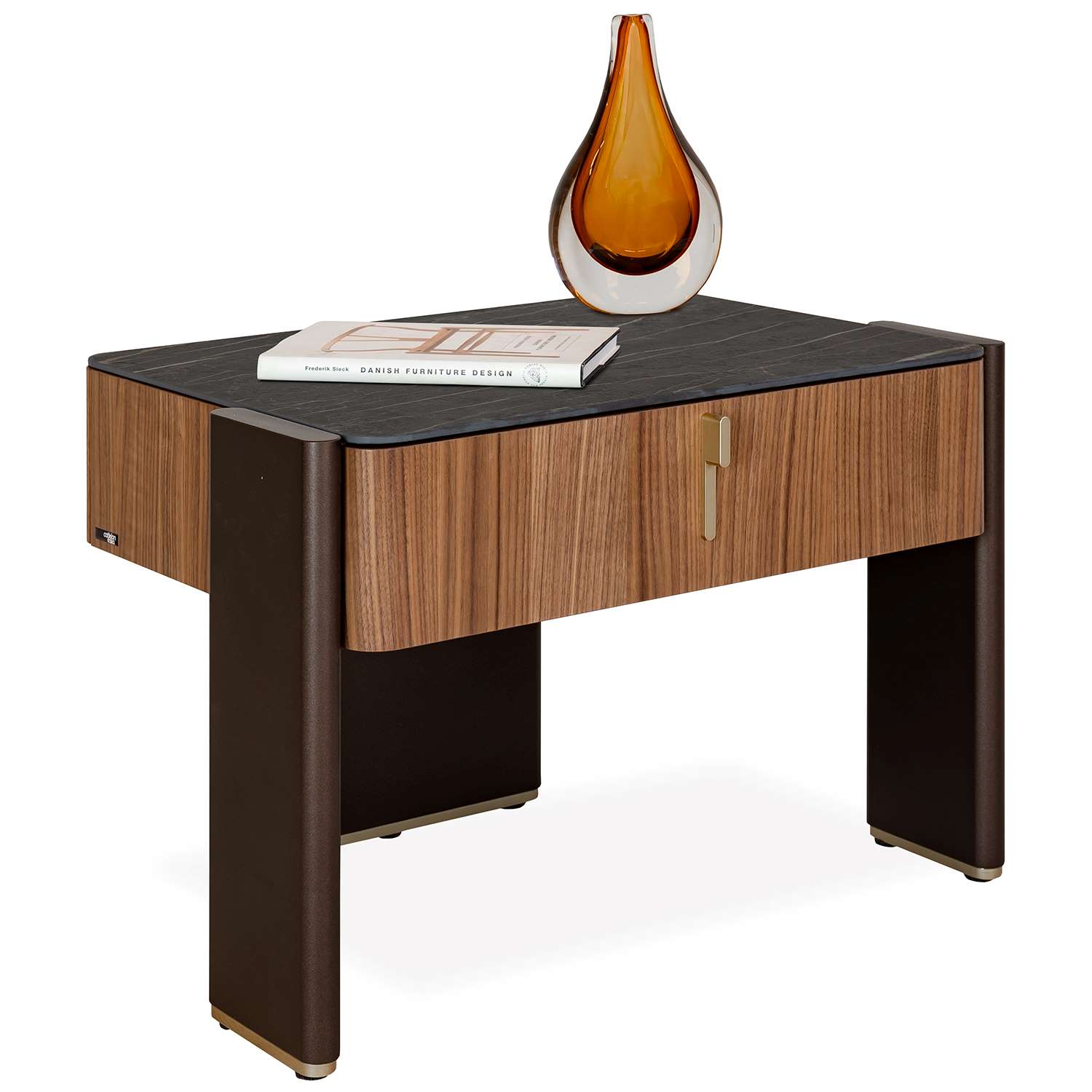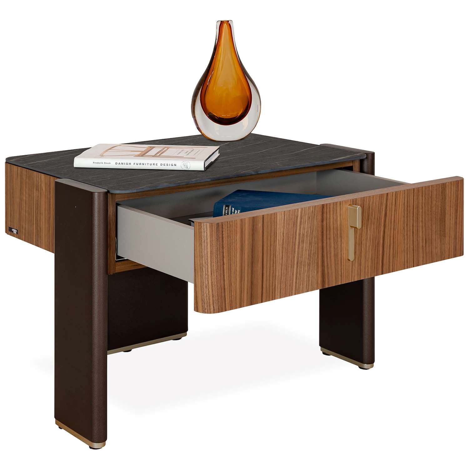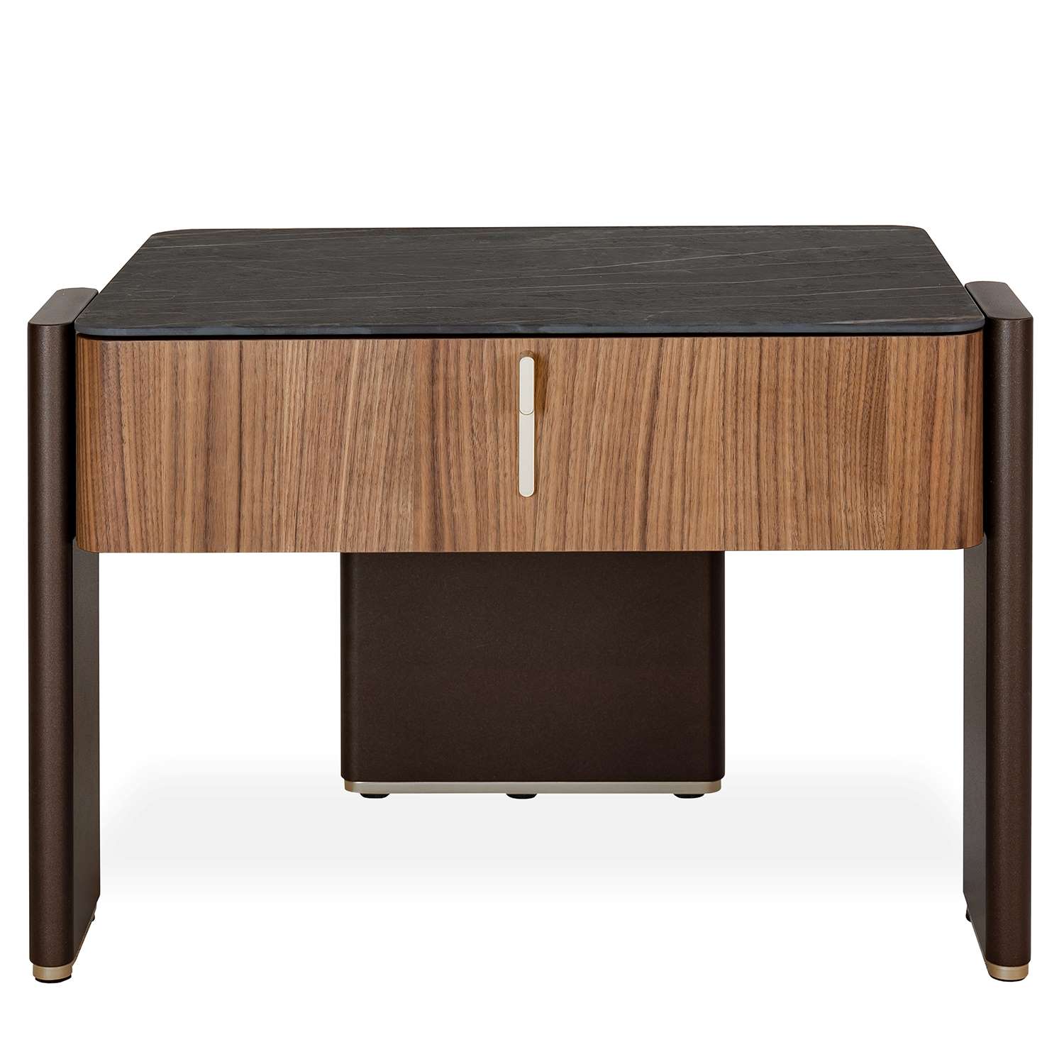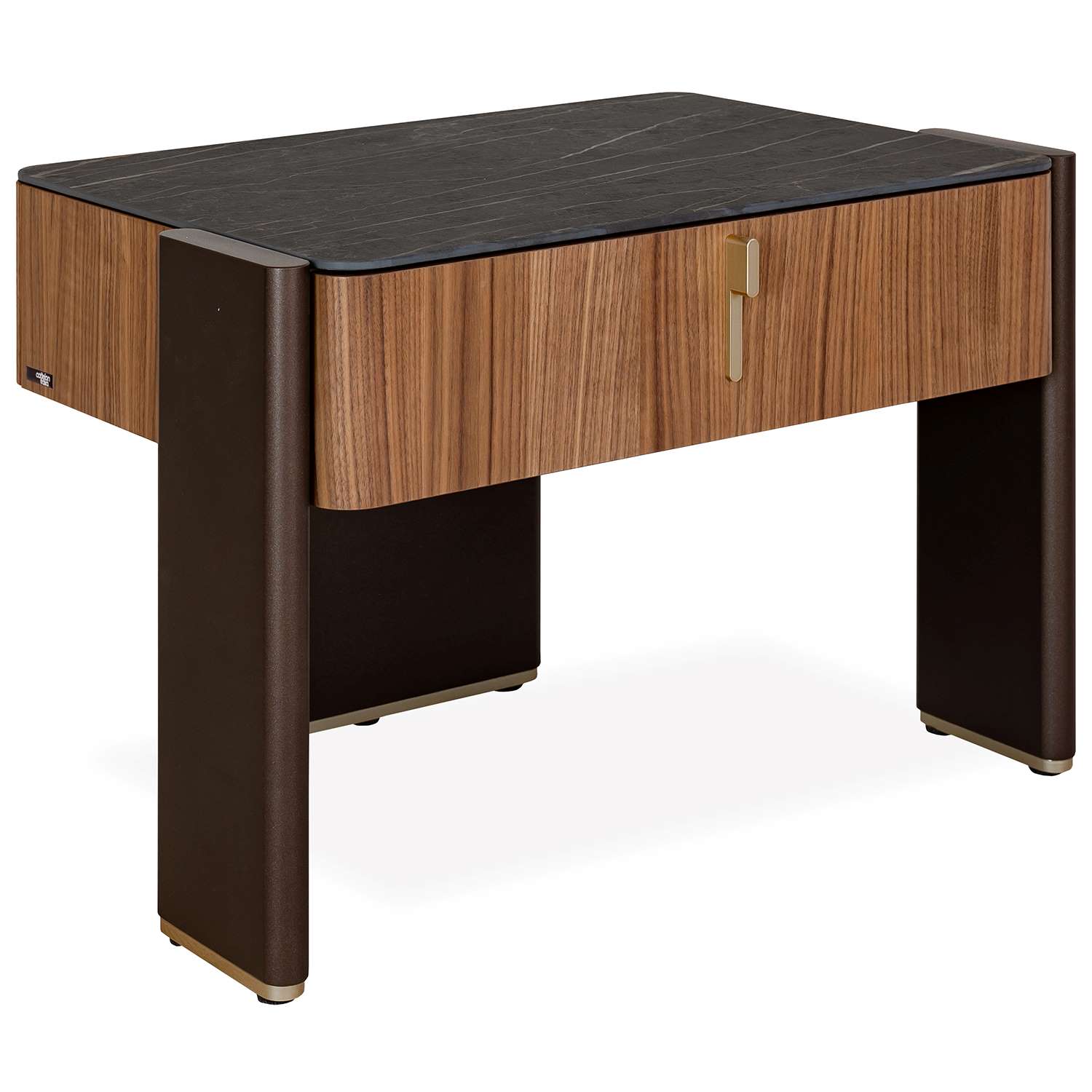 [0] => julian night stand with 1 drawer in canaletto walnut, legs bronze gf18, top in marmi matt portoro km07