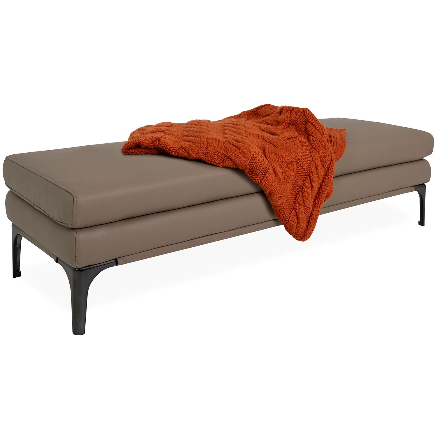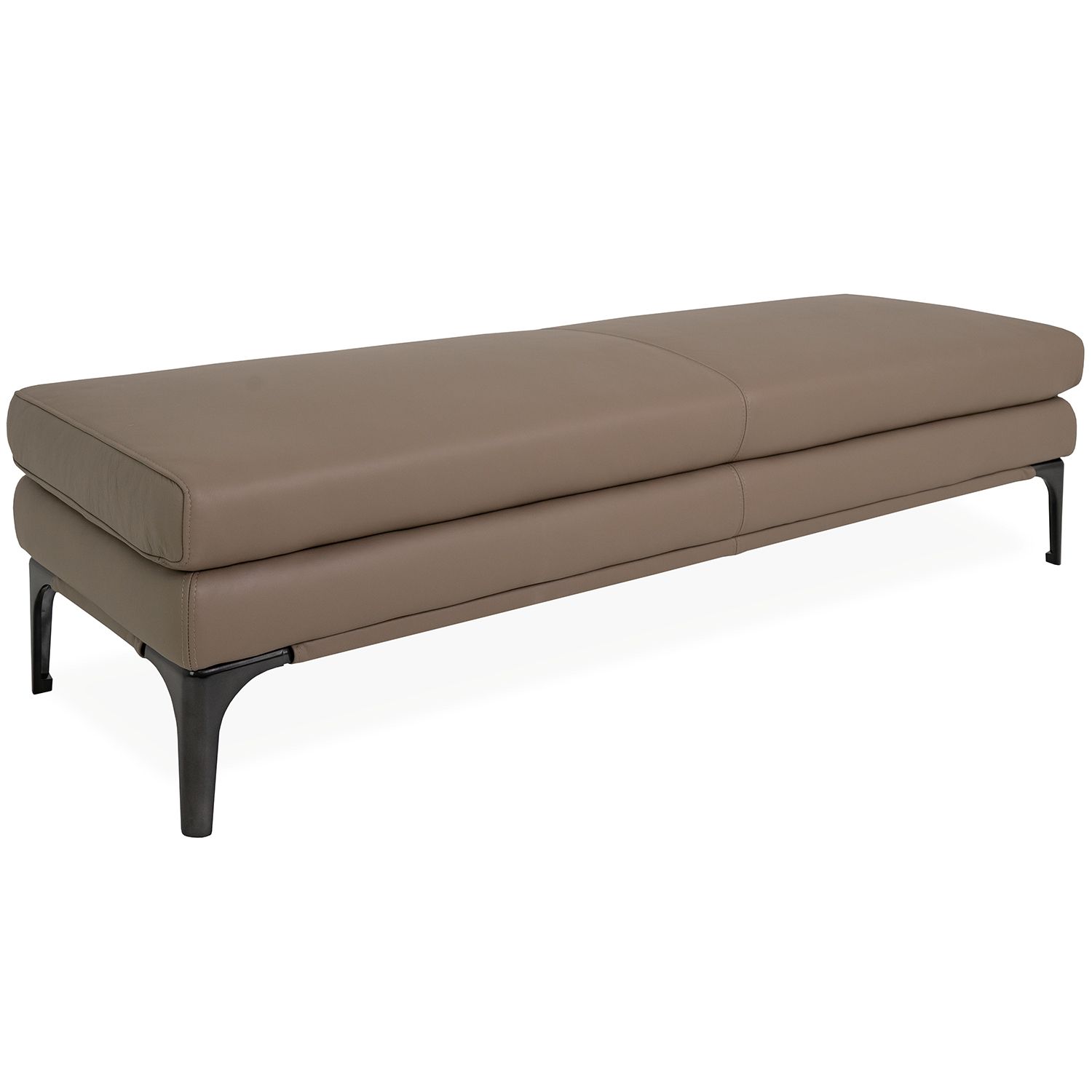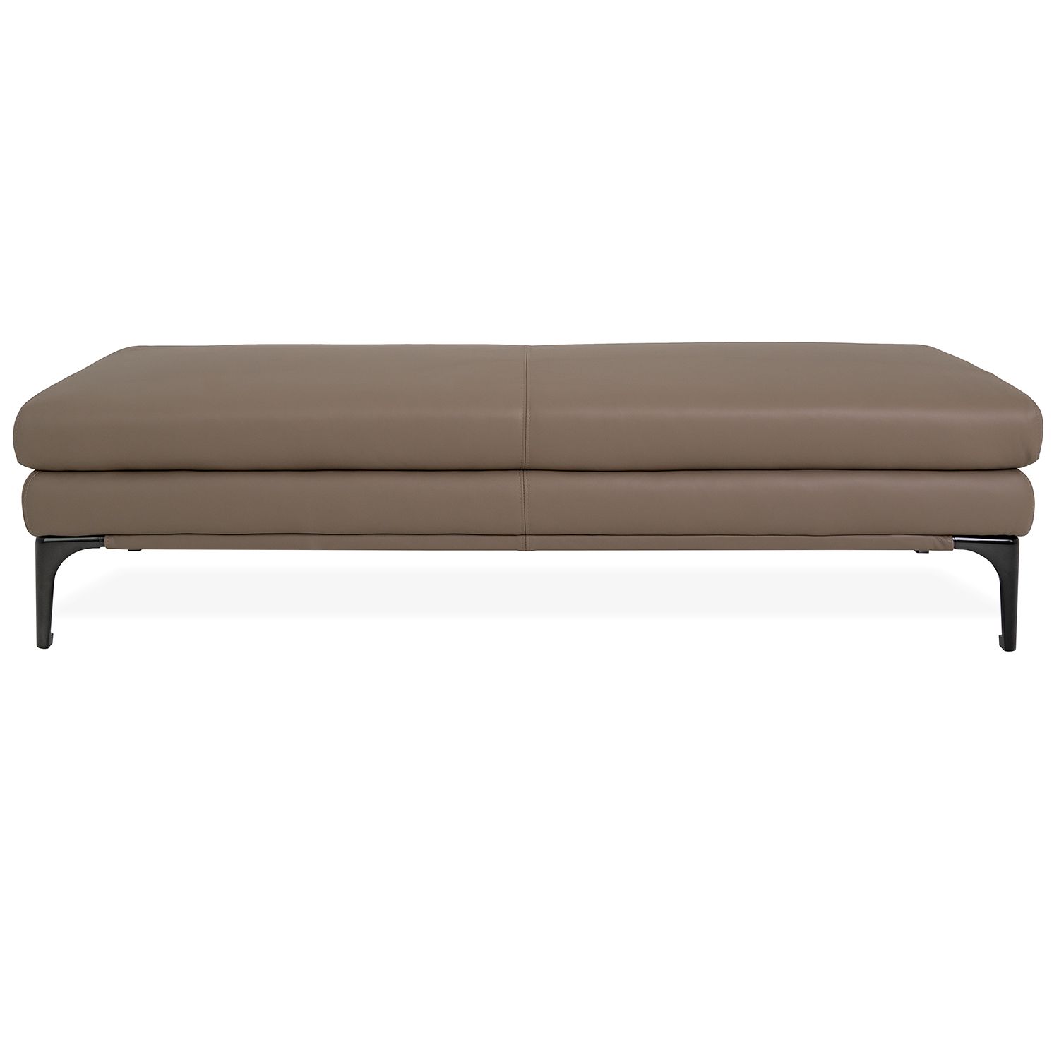 The Juliette Bench features an elegant, elongated form that easily accommodates multiple sitters. Upholstered in protected leather in a neutral shade of pine bark brown, this bench has shiny grey metal legs and a simple layered form ideal for a range of design environments. Juliette makes a great addition to any space that needs extra seating, from living areas and entryways, to bedrooms, dining rooms, and offices.
