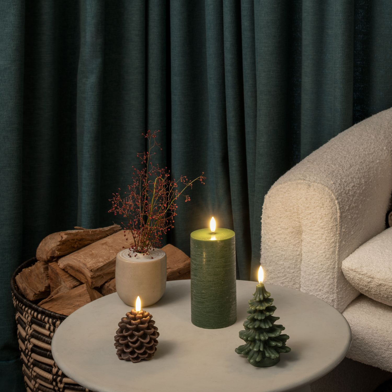This LED Christmas tree candle brings you festive, ambient light with a nature-inspired design. Crafted from virgin paraffin wax, its sculpted tree form adds handcrafted character for a warm, homey feel. This candle uses Uyuni's Signature Flicker™ LED to create a soft, flame-free glow that works well on mantels, side tables, or holiday displays, whether used alone or grouped together.