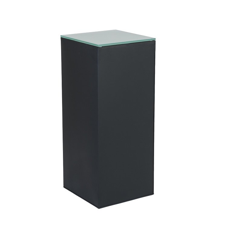 [0] => The Lumi large pedestal, available in a black finish, has crisp angular design with LED lights to illuminate your valuables on display. With its simple, attractive design Lumi draws attention to your display without being distracting.